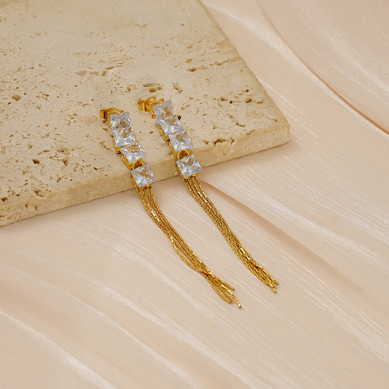 Wholesale Stainless steel earrings with diamond tassels
