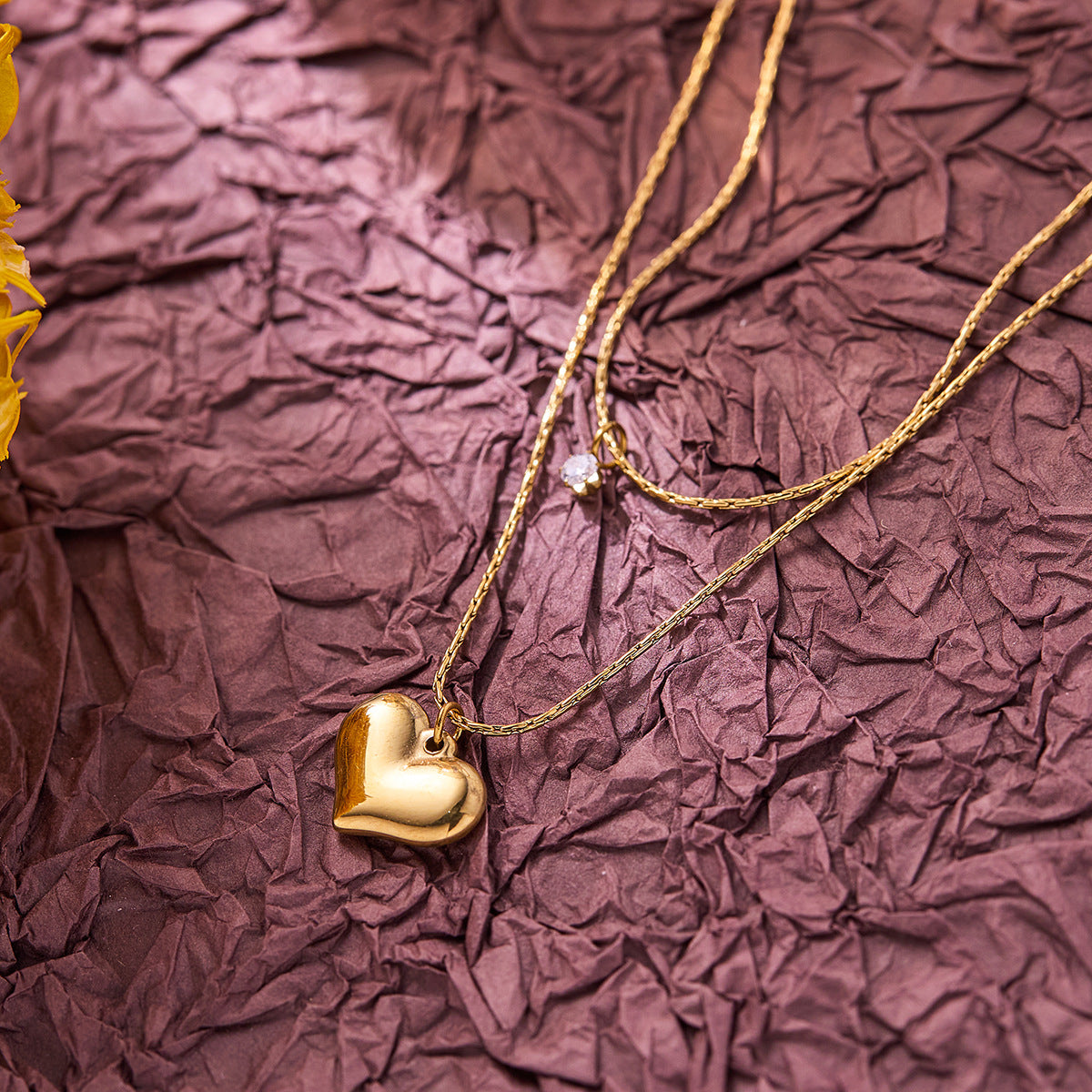 Wholesale Titanium Steel Heart-shaped Small Diamond Double-layer Necklace