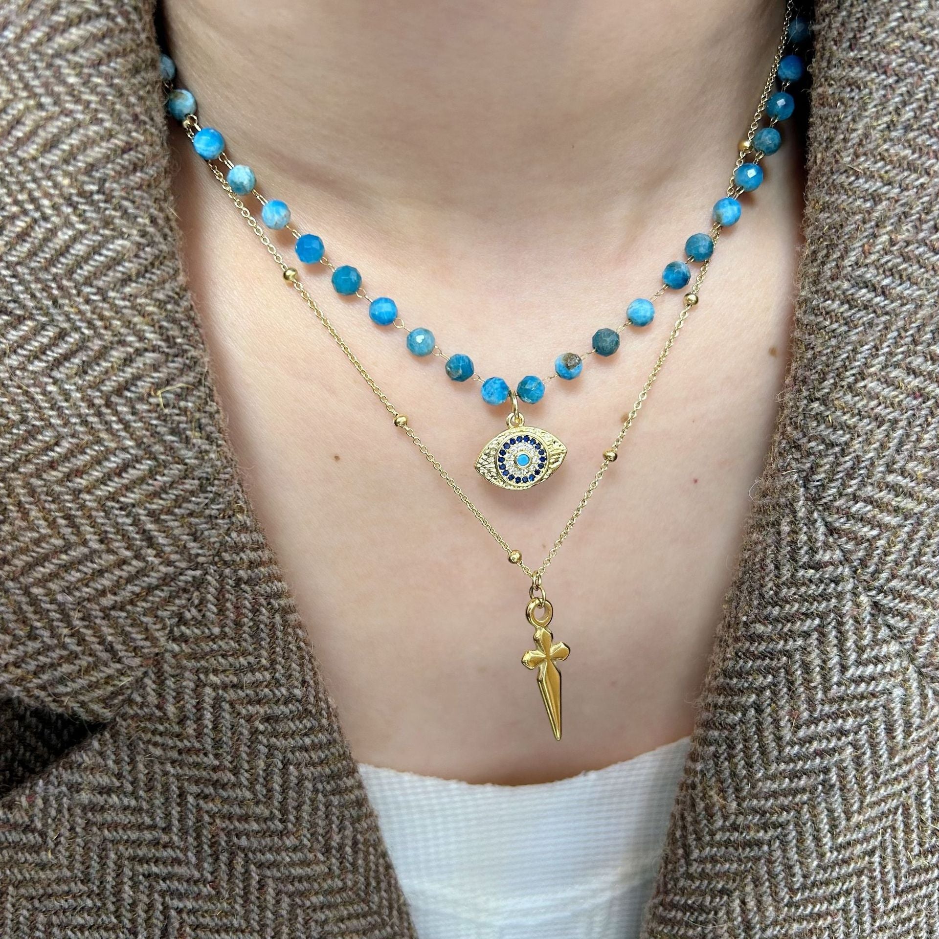 Wholesale Turtle Sword Pendant Green Stone Natural Retro High Fashion Pendant Titanium Steel Necklace