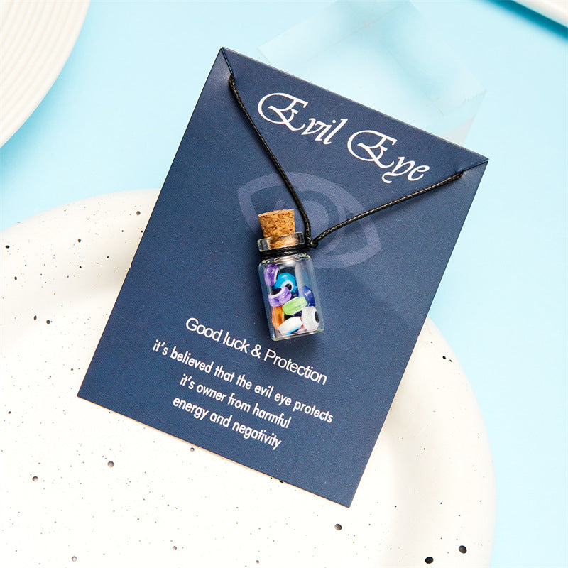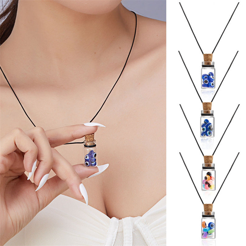 Wholesale Fashion Devil's Eye Glass bottle pendant card wax rope necklace