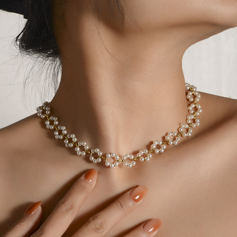 Wholesale flower necklace versatile temperament small fresh Pearl clavicle chain