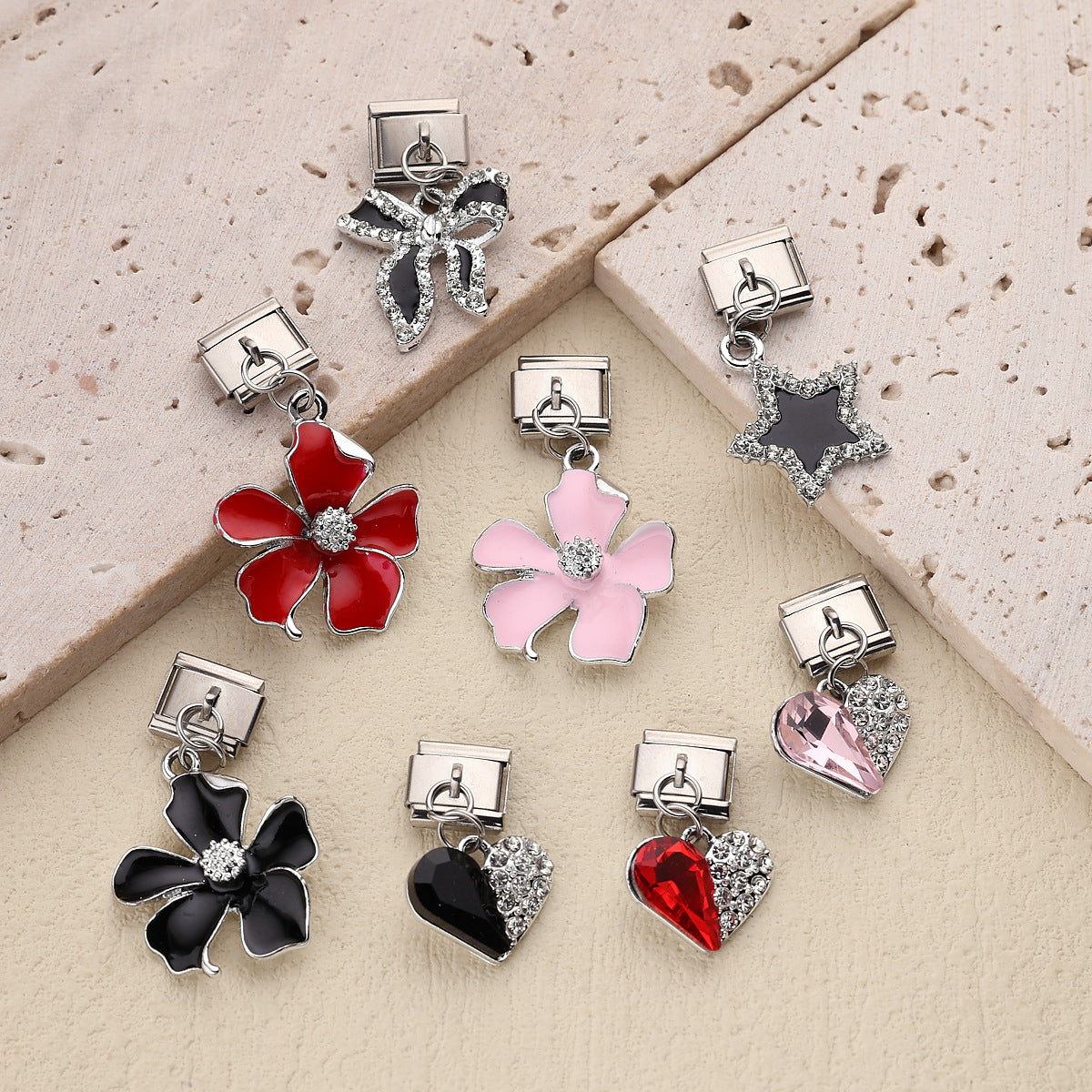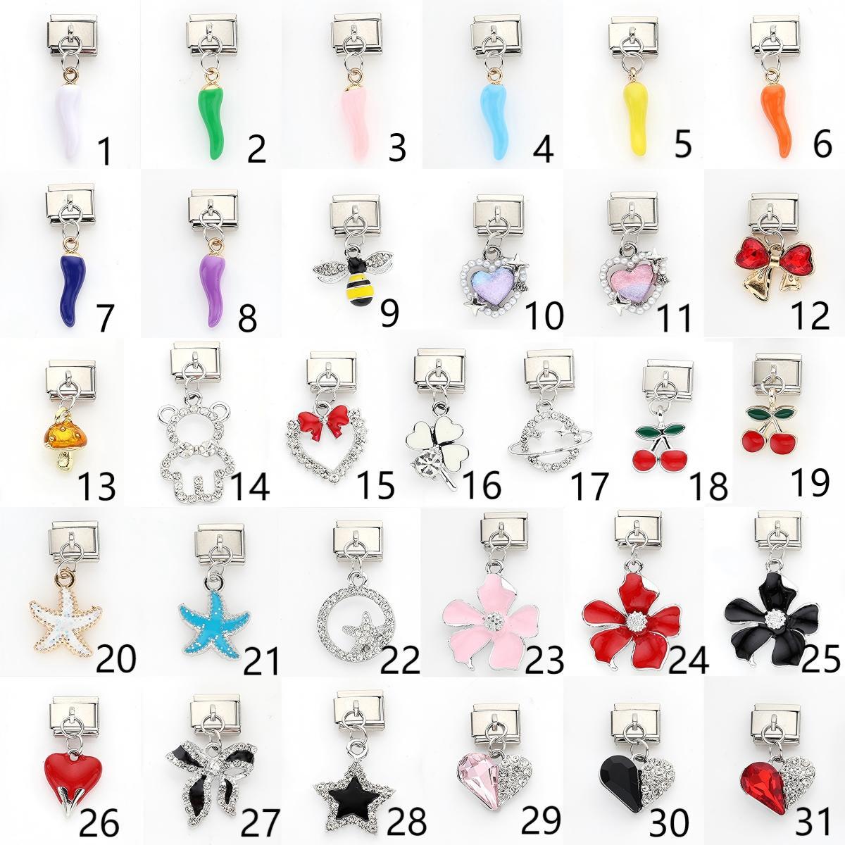 Wholesale 10pcs Italian Charm Bracelet 9mm DIY Splicing Cherry Pepper Flower Pendant Stainless Steel Composable Bracelet