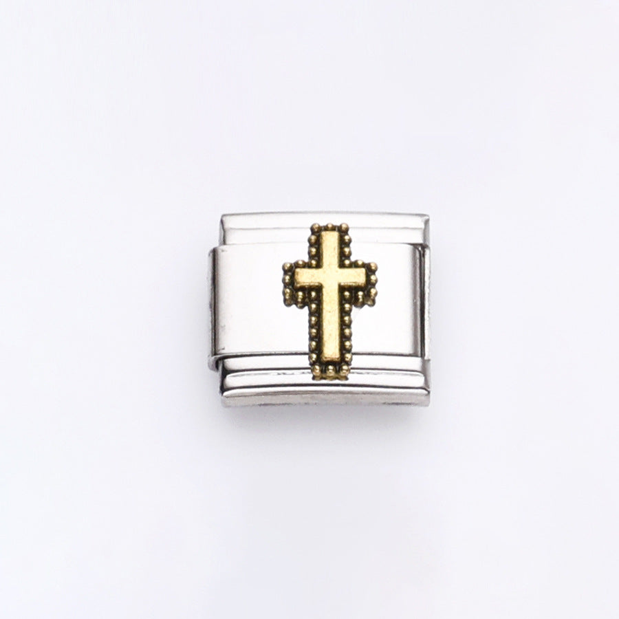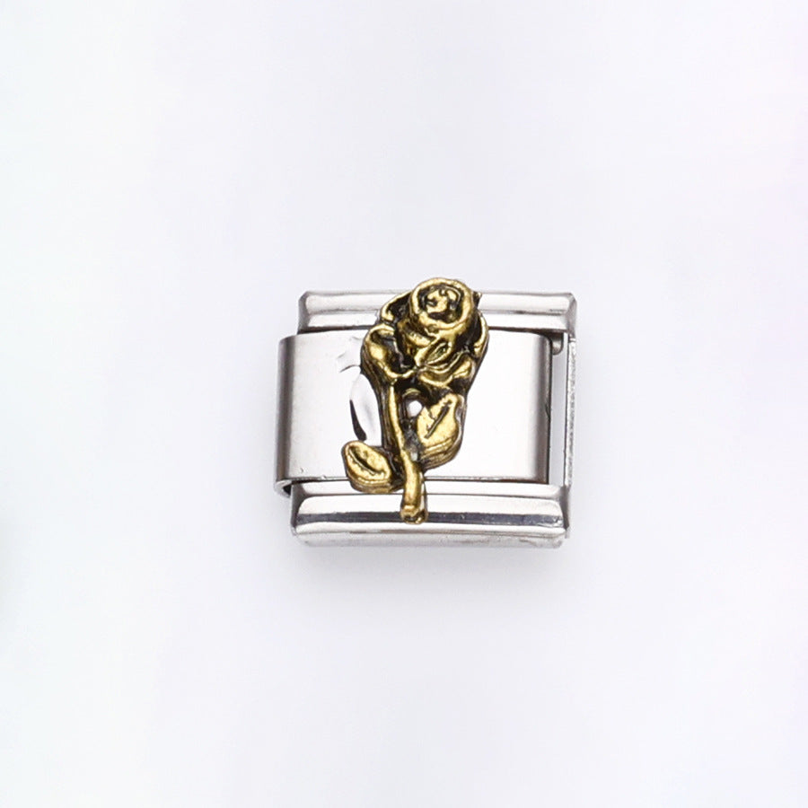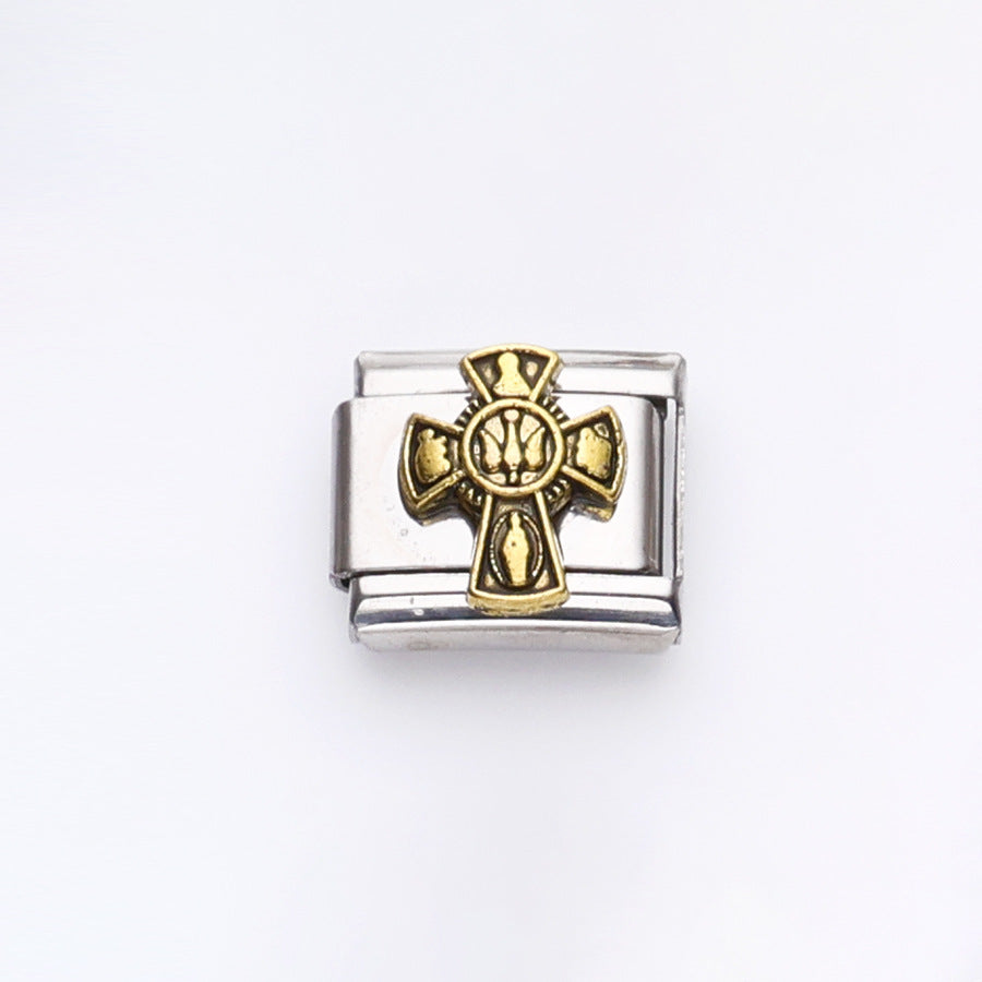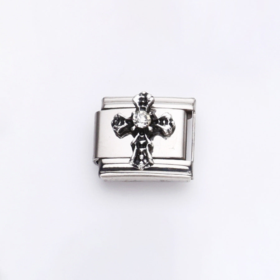 Wholesale 10pcs Italian Charm Bracelet 9mm DIY Splicing Cross Rose Stainless Steel Composable Bracelet
