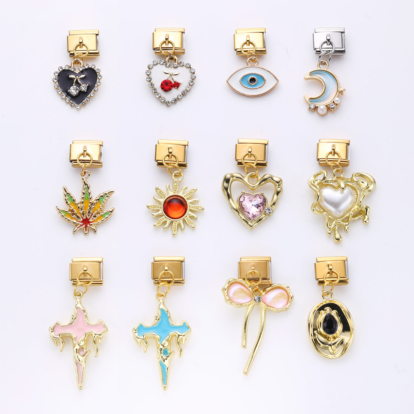 Wholesale 10pcs Italian Charm Bracelet 9mm DIY Splicing Gold Cherry Cross Stainless Steel Composable Bracelet