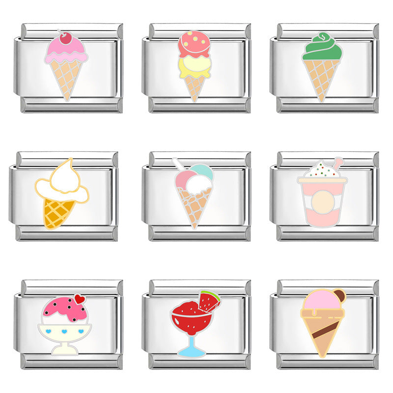 Wholesale Italian Charm Bracelet 9mm DIY Splicing Cute Creative Ice Cream Stainless Steel Composable Bracelet