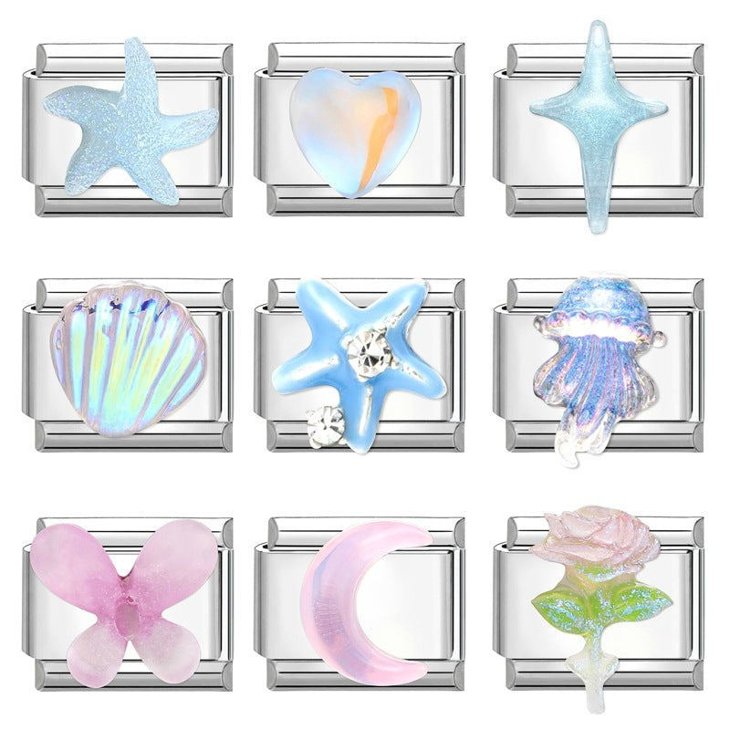 Wholesale Italian Charm Bracelet 9mm DIY Splicing Gradient Butterfly Stainless Steel Composable Bracelet