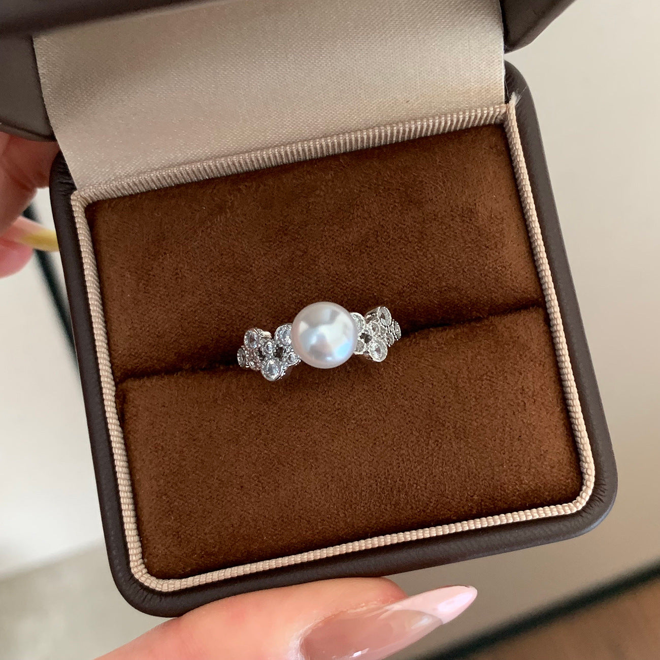 Wholesale Lace Pearl Zircon Ring Light Luxur Ring
