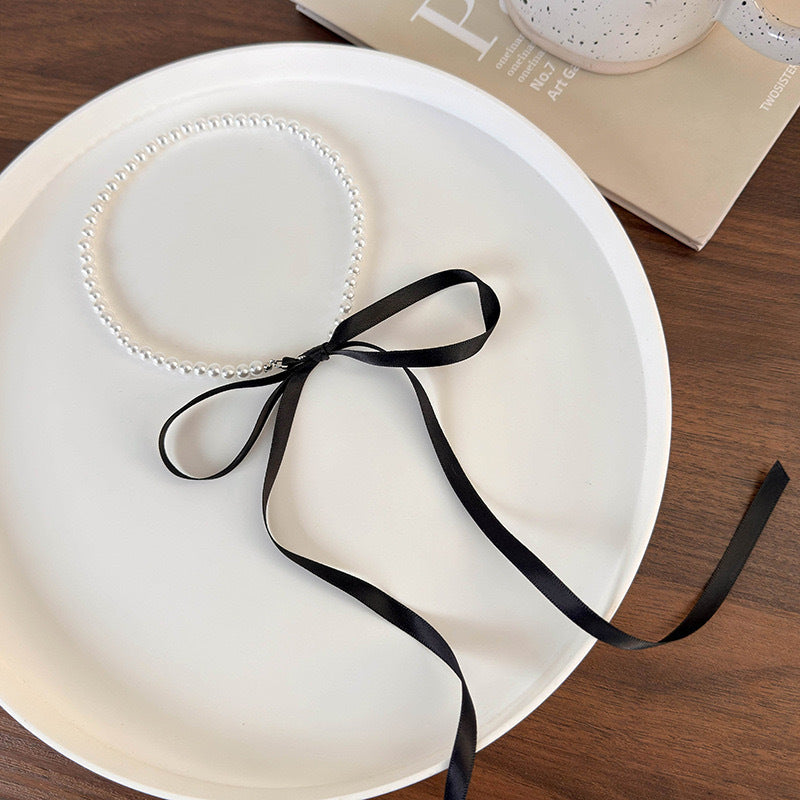 Wholesale Black Bow Tie-up Pearl Necklace Clavicle Chain Necklace