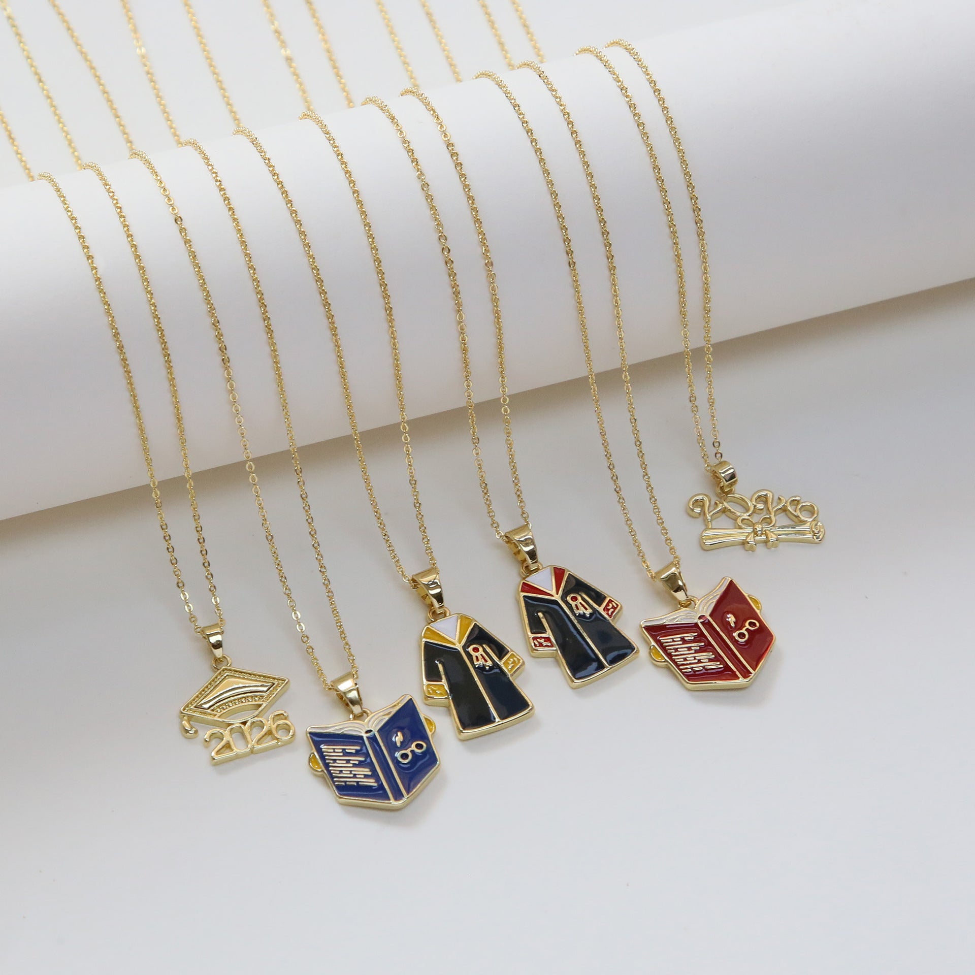 Wholesale Brass real gold electroplated doctoral hat and gown graduation season necklace