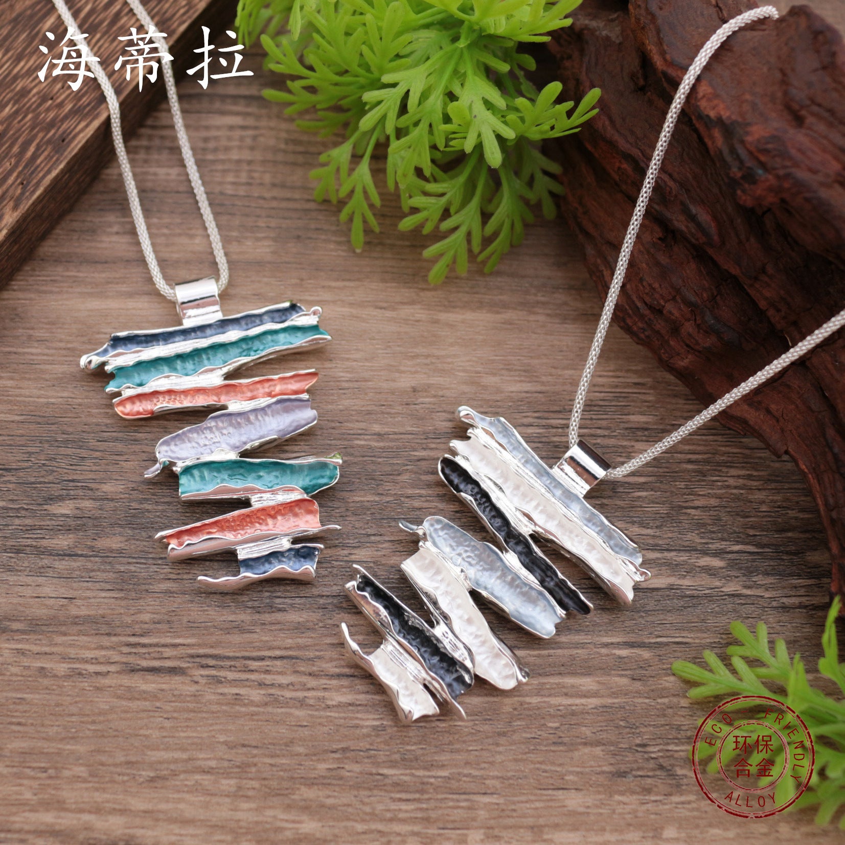 Wholesale Color Painting Oil Exaggerated Geometric Lines Long Pendant Necklace