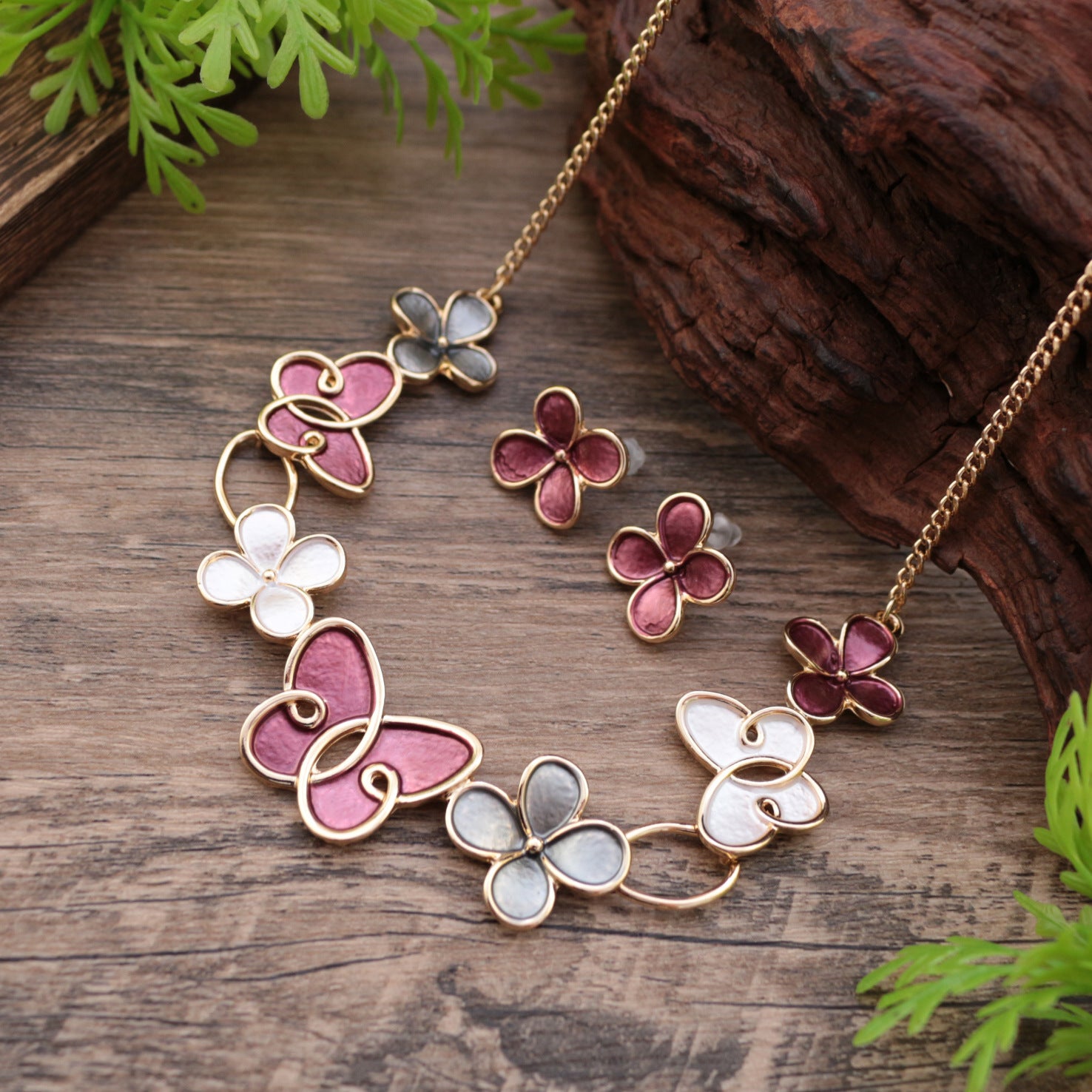 Wholesale Enamel Butterfly Flower Earrings Necklace