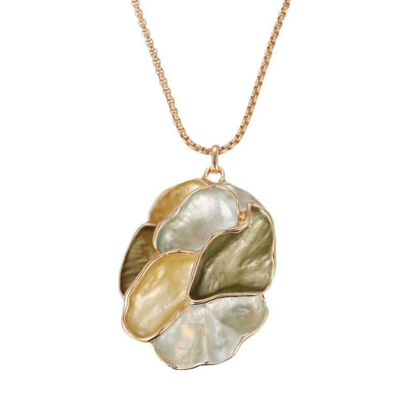 - Olive Green Geometric Petal Earrings Pendant suit-Gold