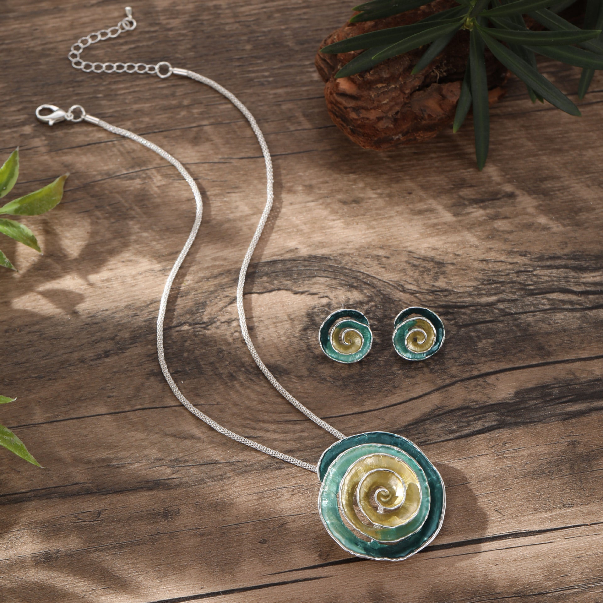 Wholesale Enamel Gradient Eternal Flower Ear Stud Banquet Earrings Necklace