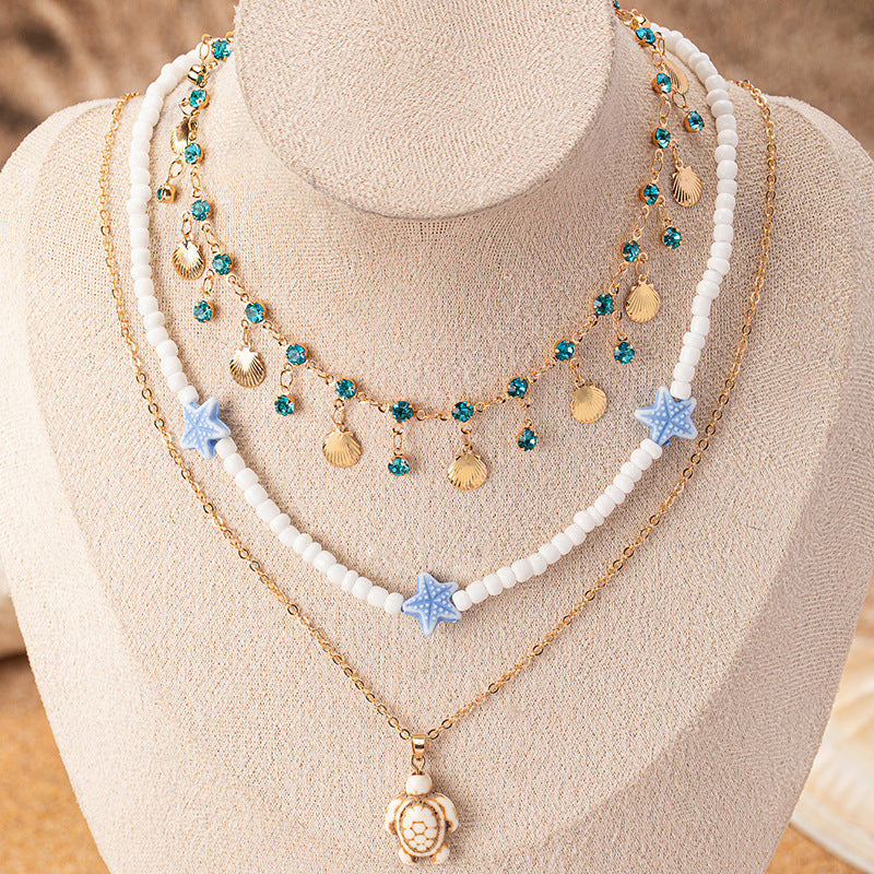 Wholesale handmade beaded clavicle chain women' s new Korean version of fresh temperament starfish shell beaded necklace