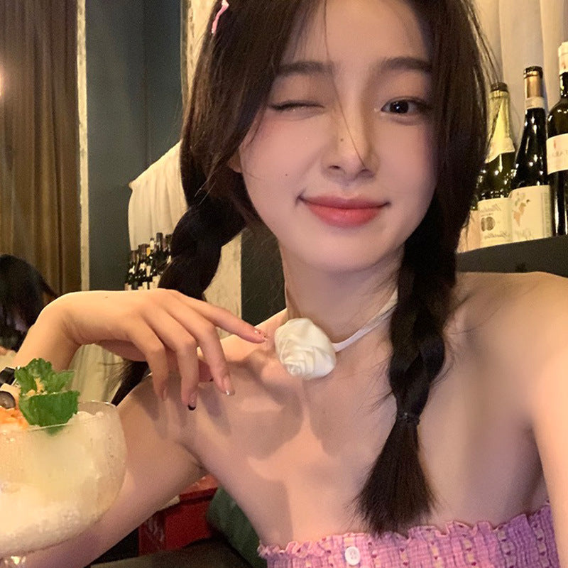 Wholesale Rose Satin Neck Chain Flower Ribbon Multi-use Hair Wrist Necklace