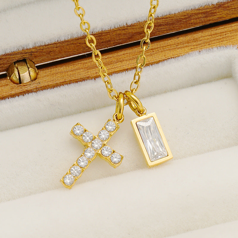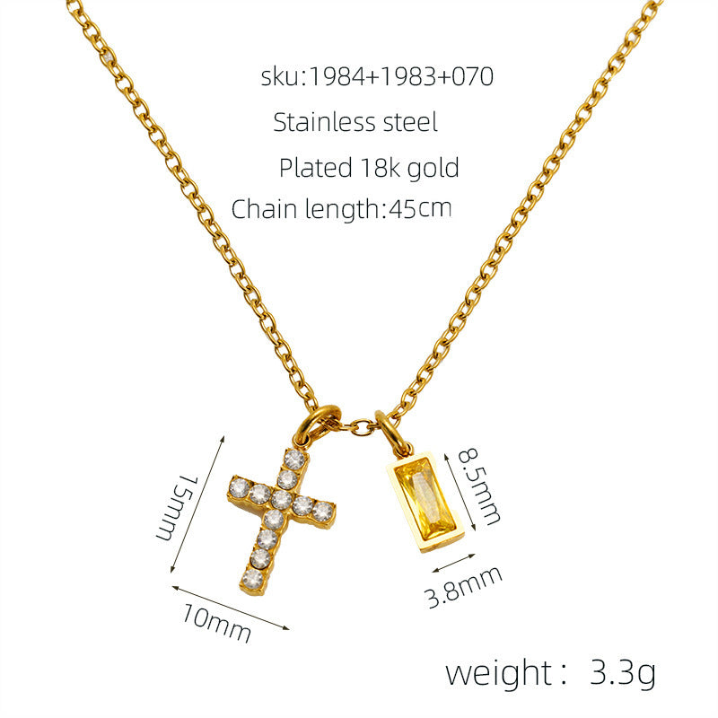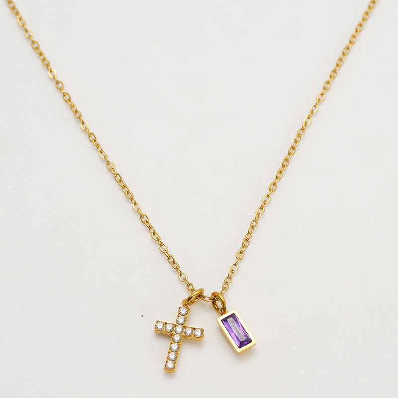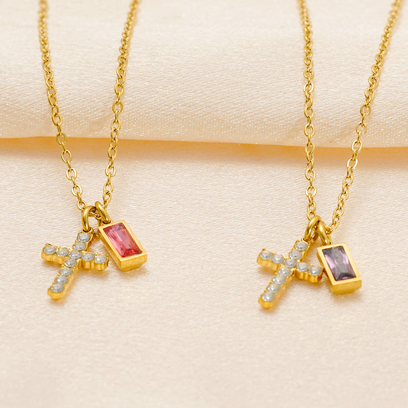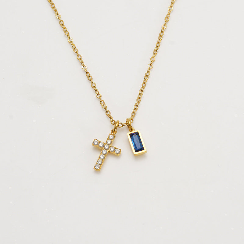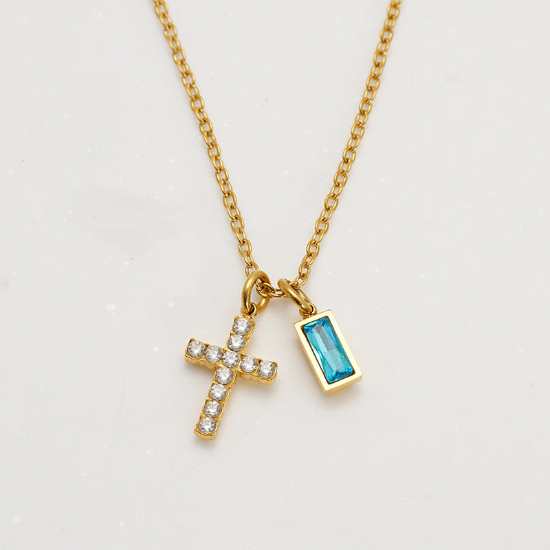 Wholesale Stainless steel December birthstone cross necklace
