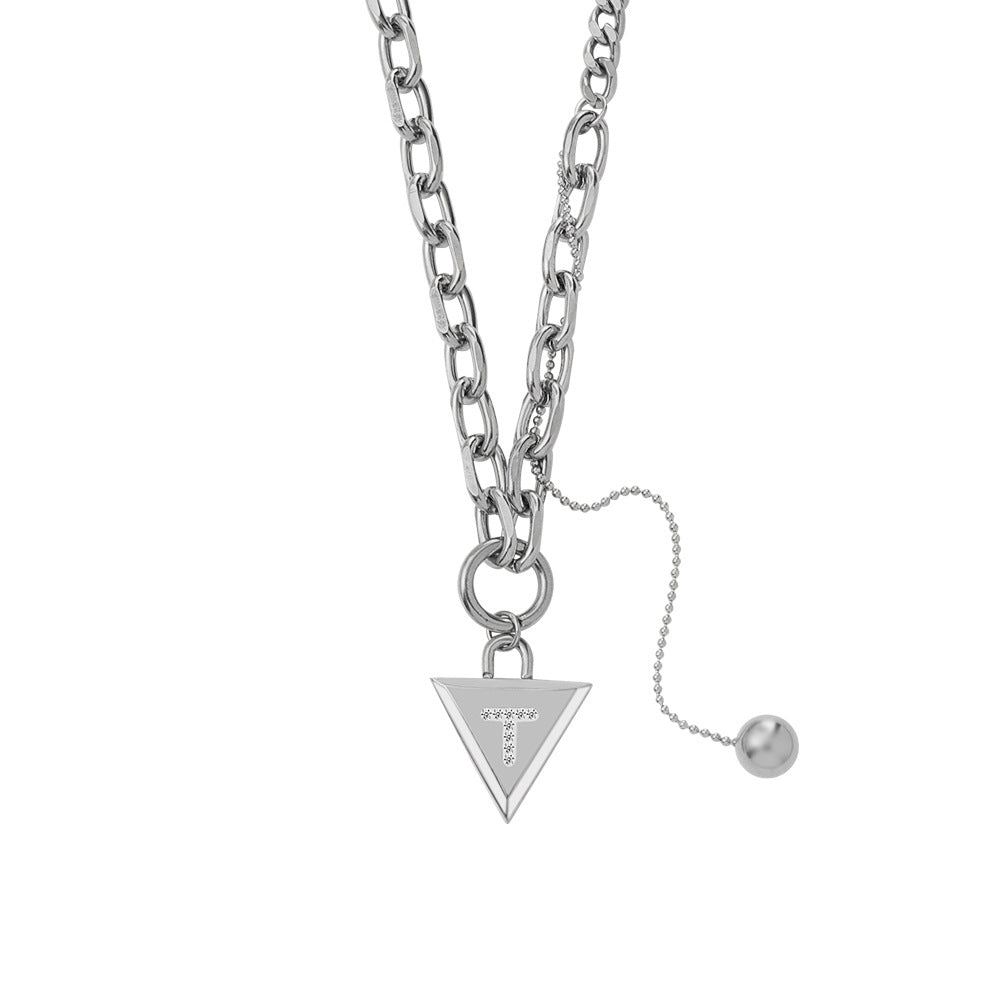 Wholesale Steel titanium rhinestone-encrusted triangle necklace