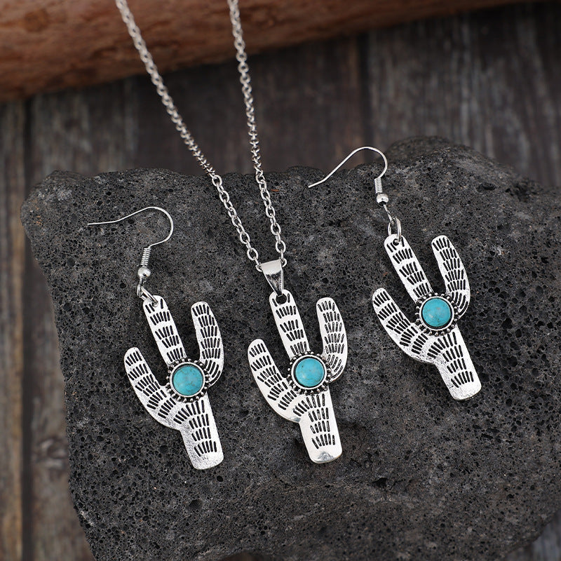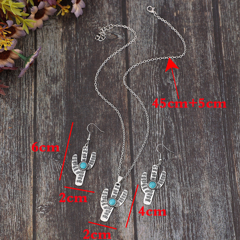 Wholesale Western style new cactus inlaid turquoise alloy Necklace