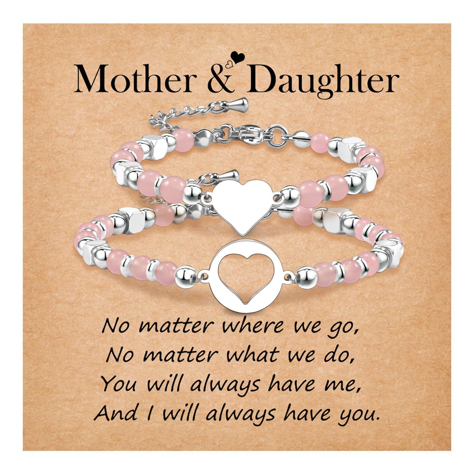 Wholesale 4mm Rose Quartz Stainless Steel Heart Bracelet Set