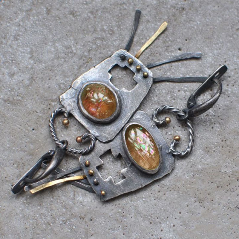 Wholesale Champagne Color Opal Earrings Antique Creative Hollow Cross Asymmetric Earrings