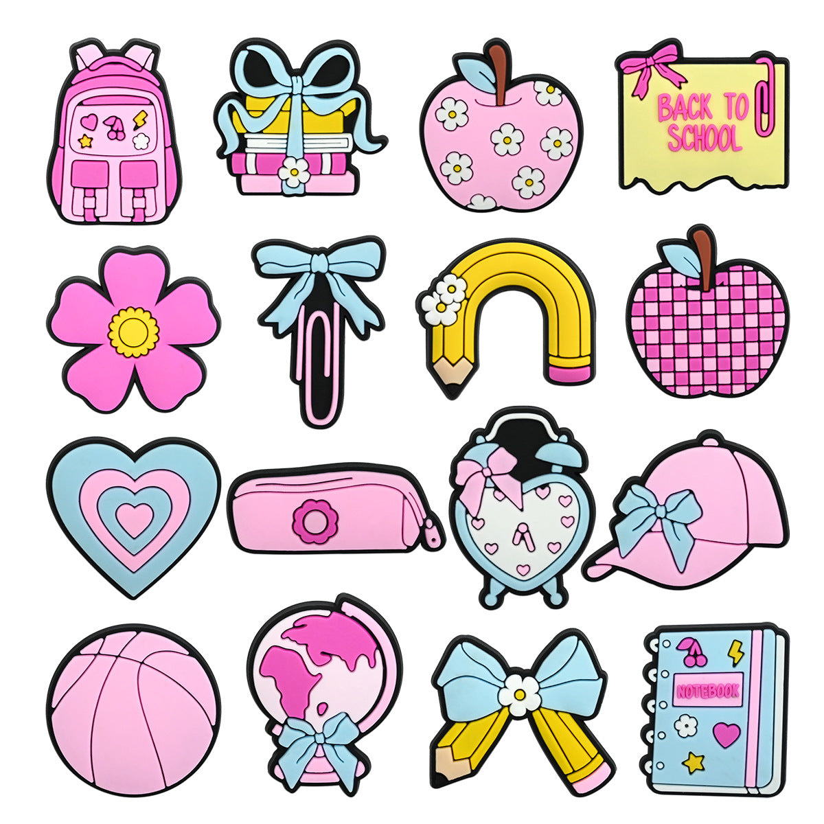 Wholesale Random 100pcs Creative learning series PVC Soft Rubber Shoe Buckle Decoration