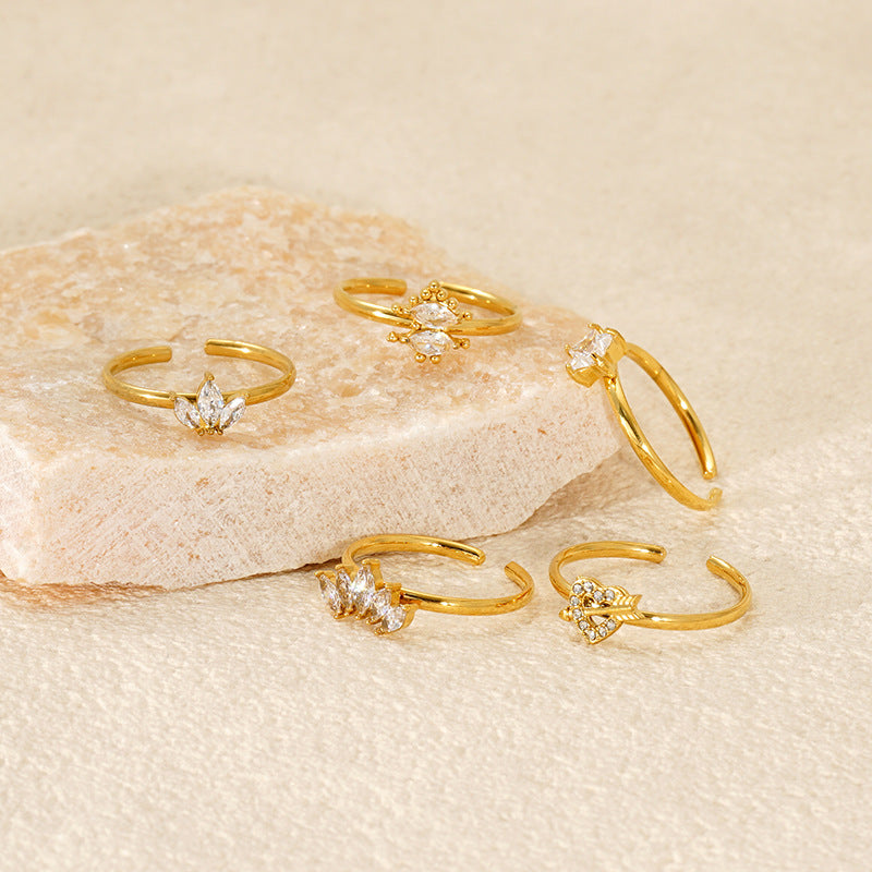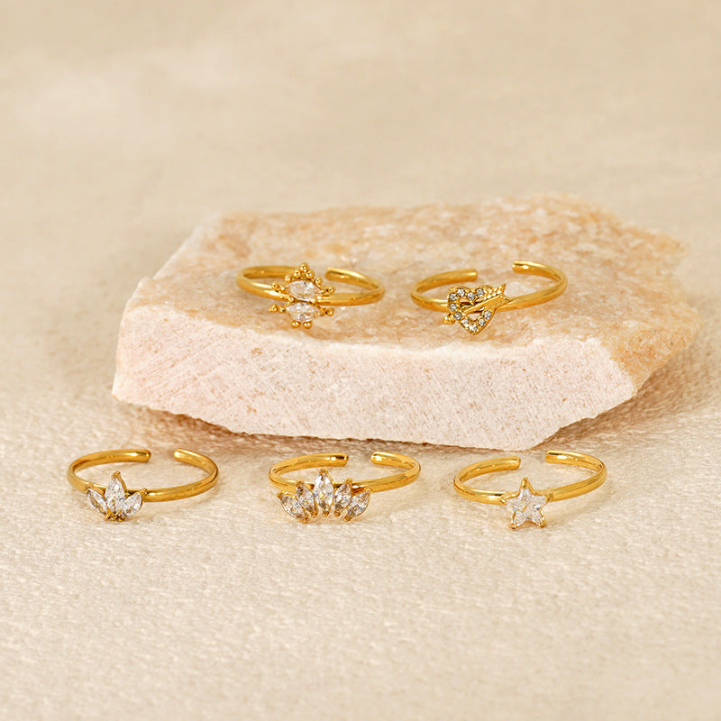 Wholesale Stainless steel zircon adjustable heart and star ring