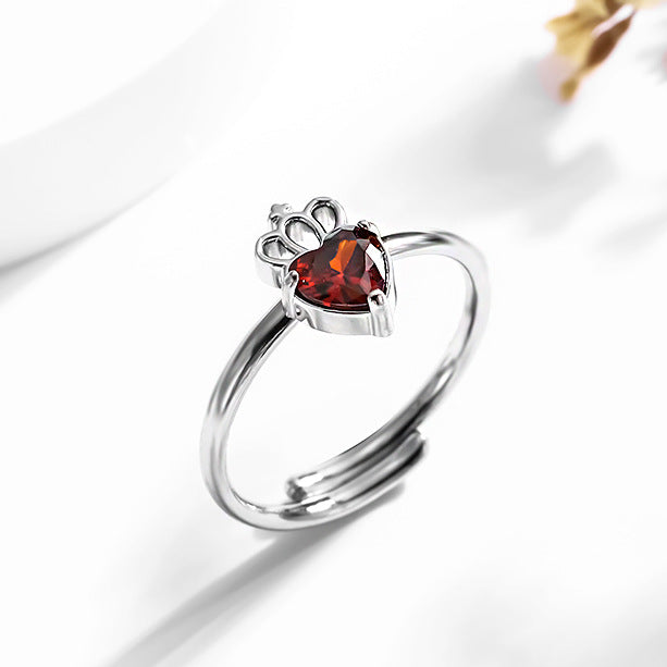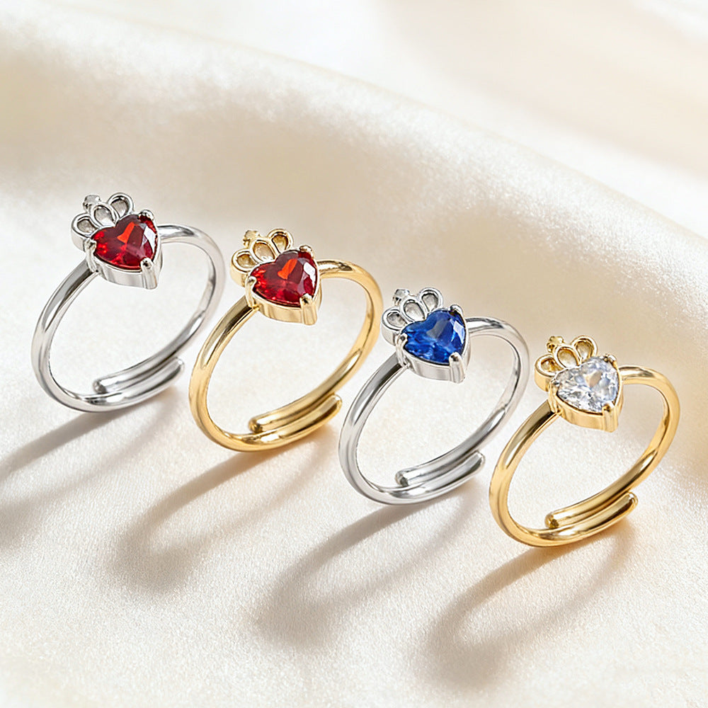 - Steel color red zirconium ring r0025s-2 2PCS