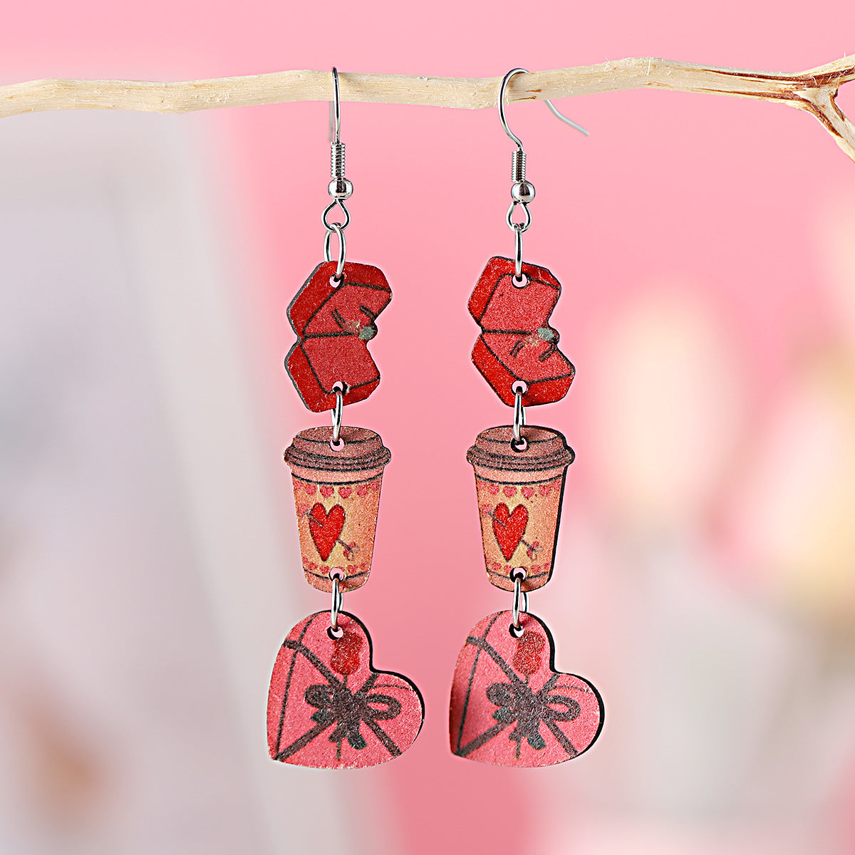 Wholesale Wooden Valentine' s Day Heart Earrings