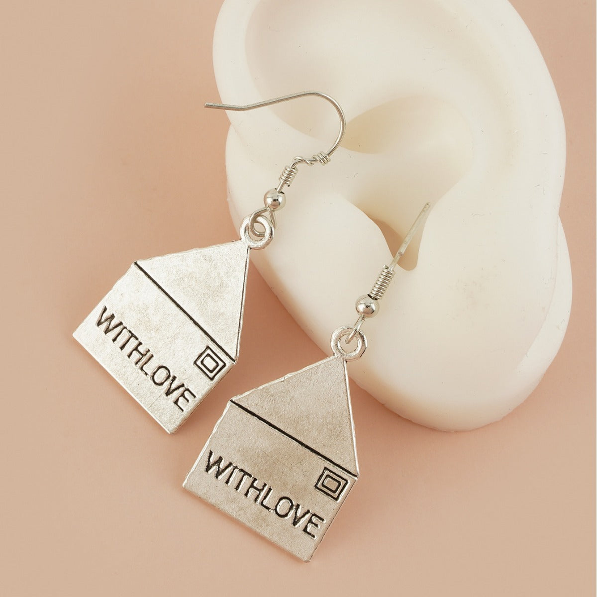 Wholesale 2PCS Zinc alloy heart-shaped envelope earrings