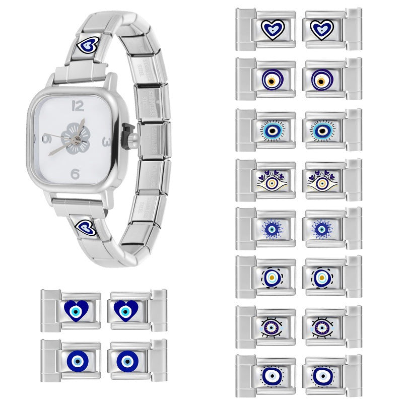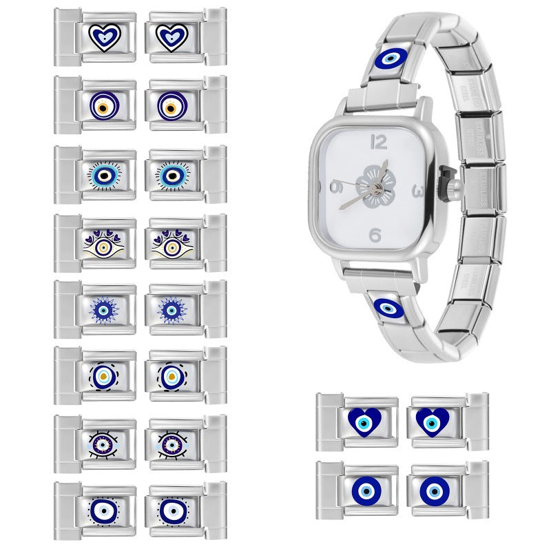 Wholesale 9mm Italian Charm Starter Bracelets DIY Blue Heart Evil Eye Stainless Steel Composable Bracelet