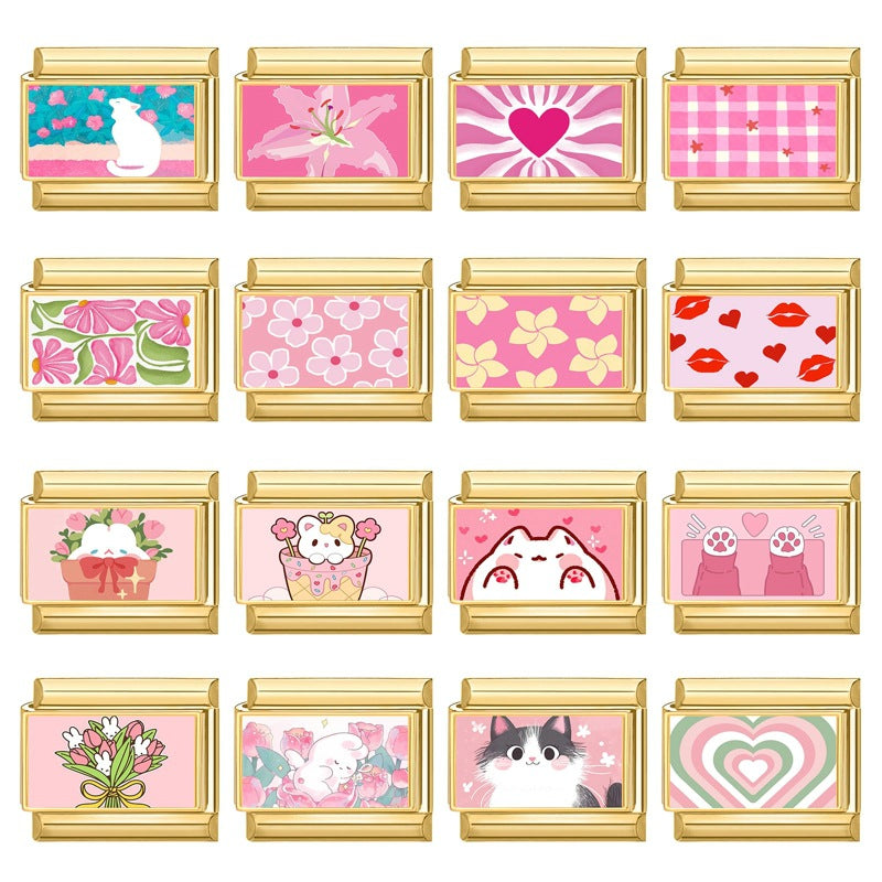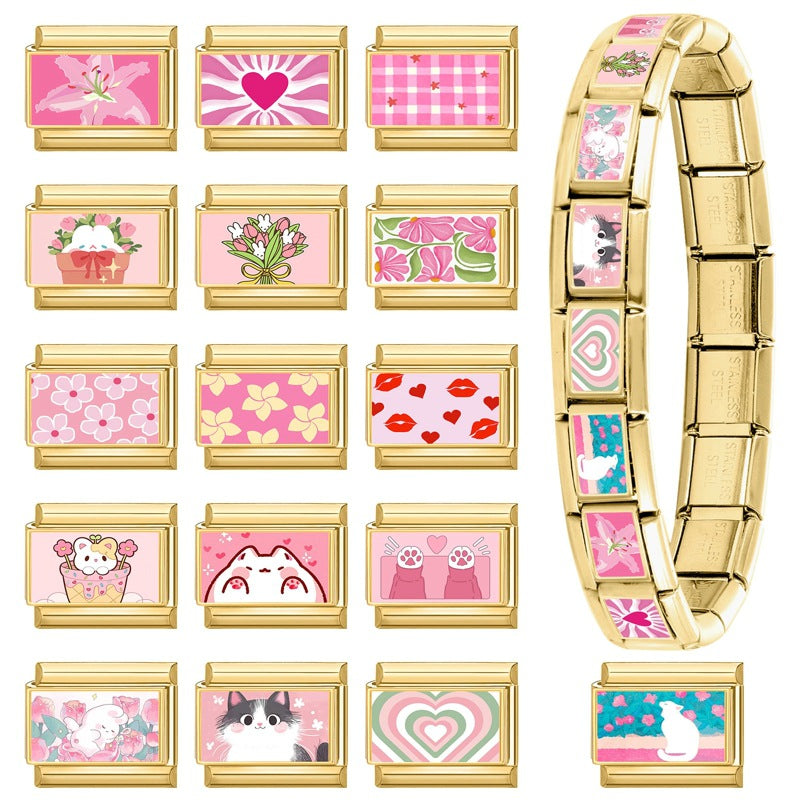 Wholesale 9mm Italian Charm Starter Bracelets pink series heart-shaped DIY Single Section Creative Stainless Steel Composable Bracelet