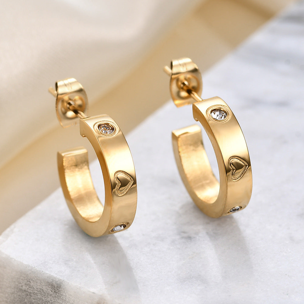 Wholesale Titanium Steel Diamond Geometric U-shaped earrings