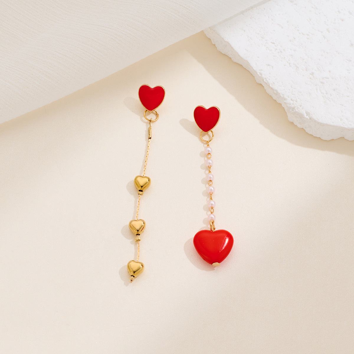 - 261 - long, true red heart pendant asymmetrical earrings