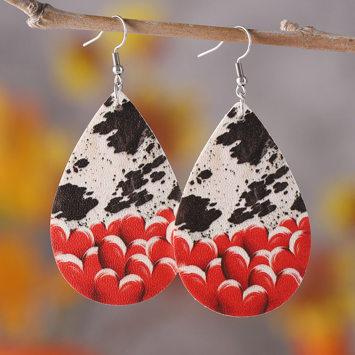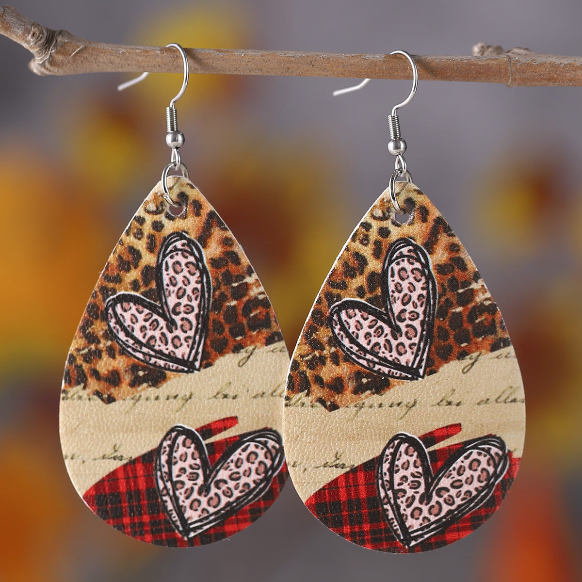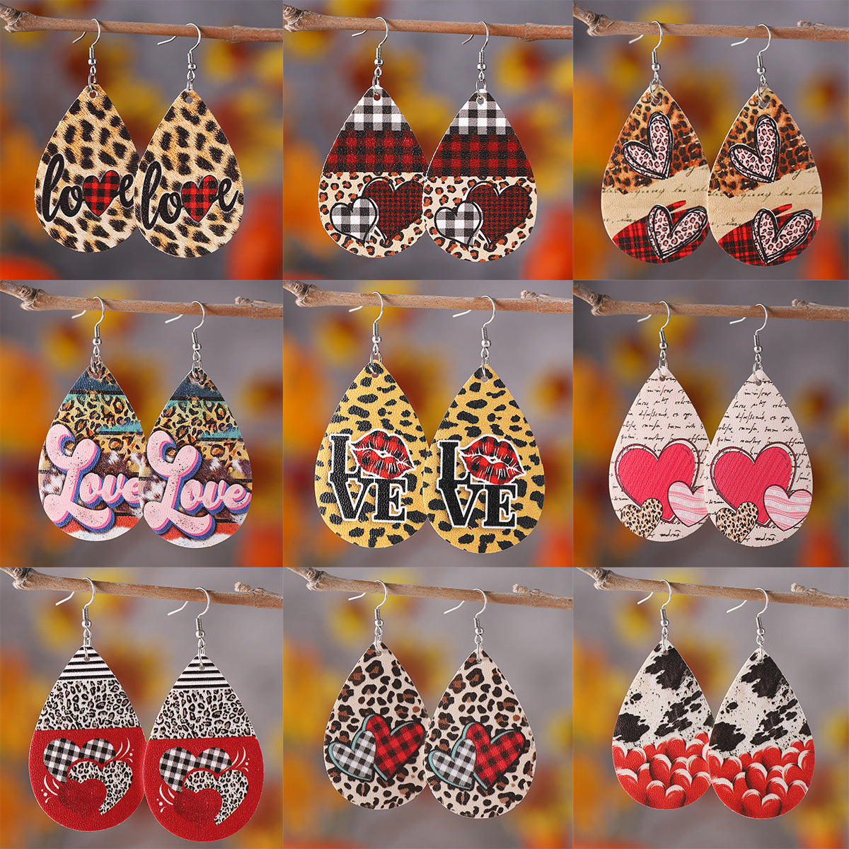 Wholesale PU leather Valentine' s Day earrings with letters leopard print and heart design