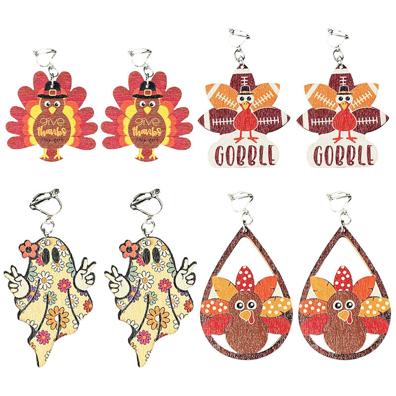 Wholesale 2 pairs/pack Thanksgiving Series Cartoon Wooden Retro Earrings