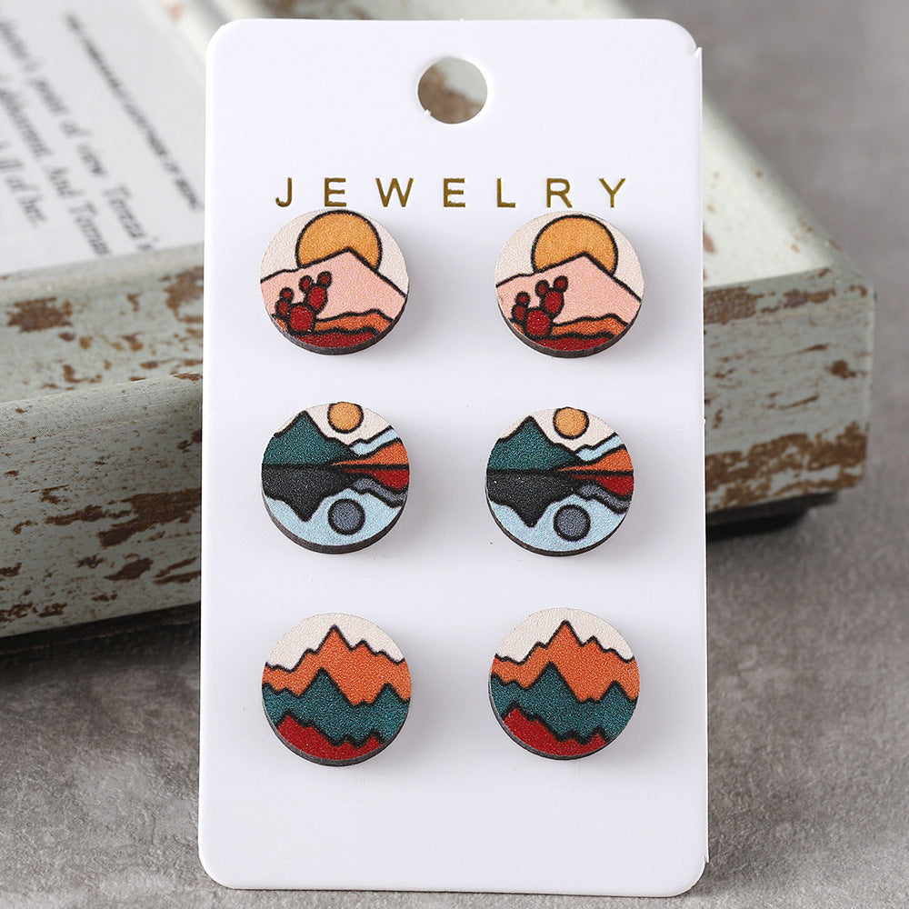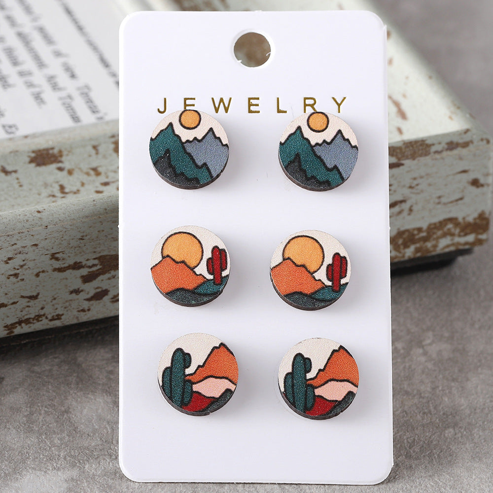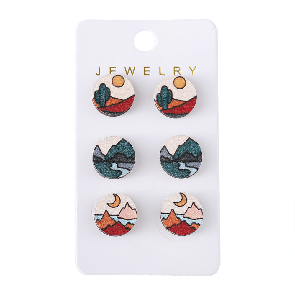 Wholesale Bohemian Sun Mountains Rivers Simple Scenery Earrings Set