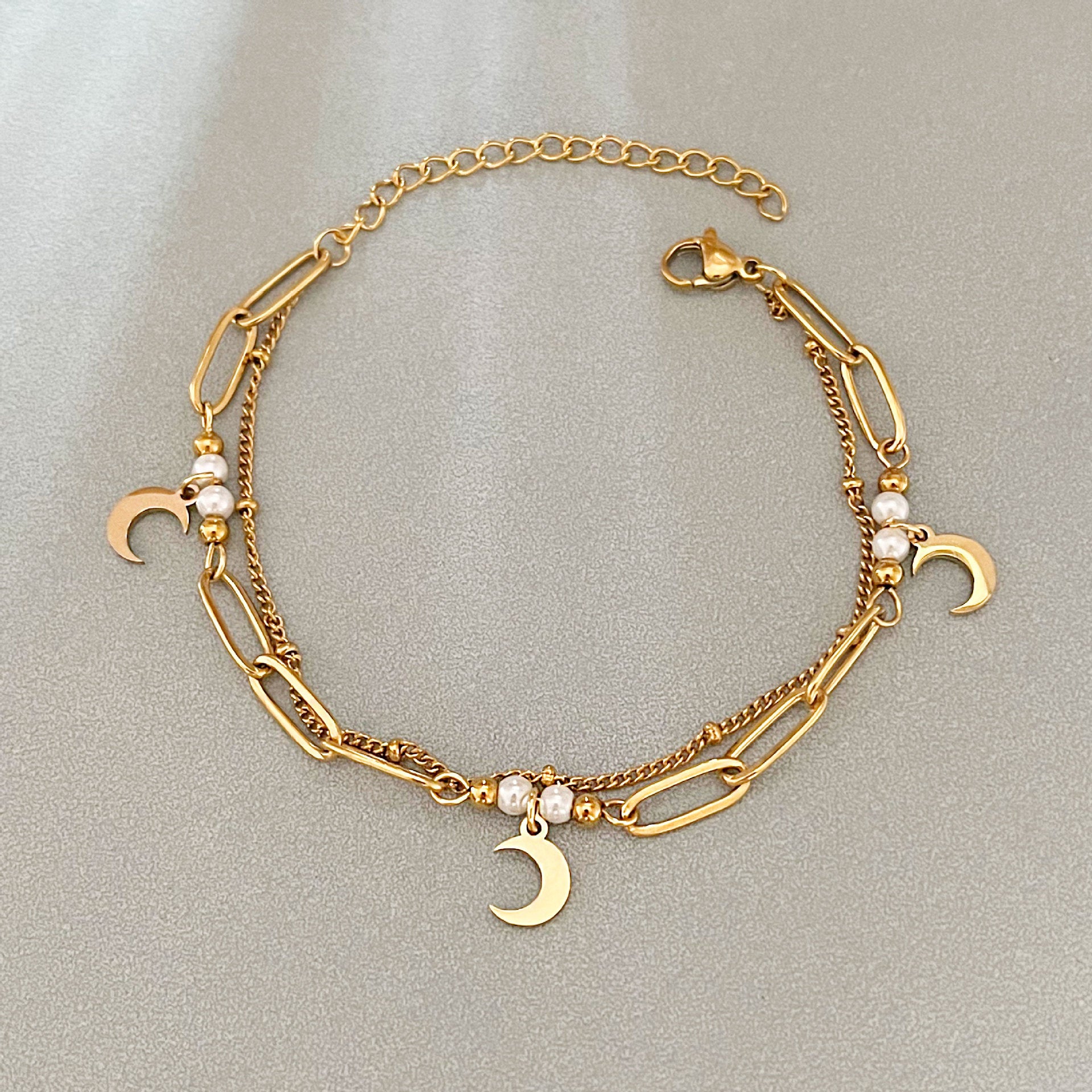 Wholesale double-layer paper clip moon bracelet