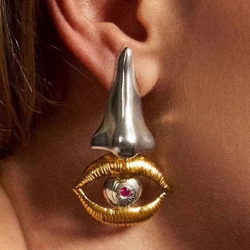 - Silver nose gold eye earrings