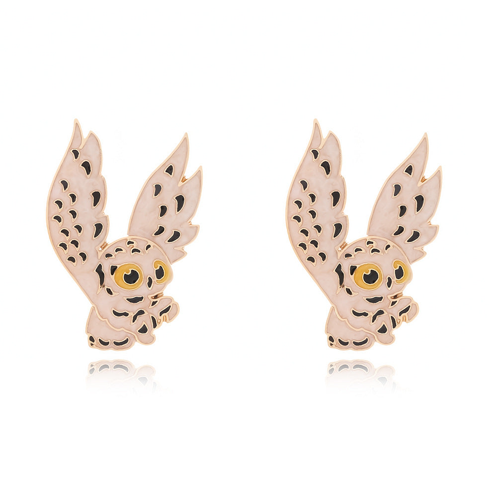Wholesale Long Alloy Oil Dripping Owl Pendant Earrings