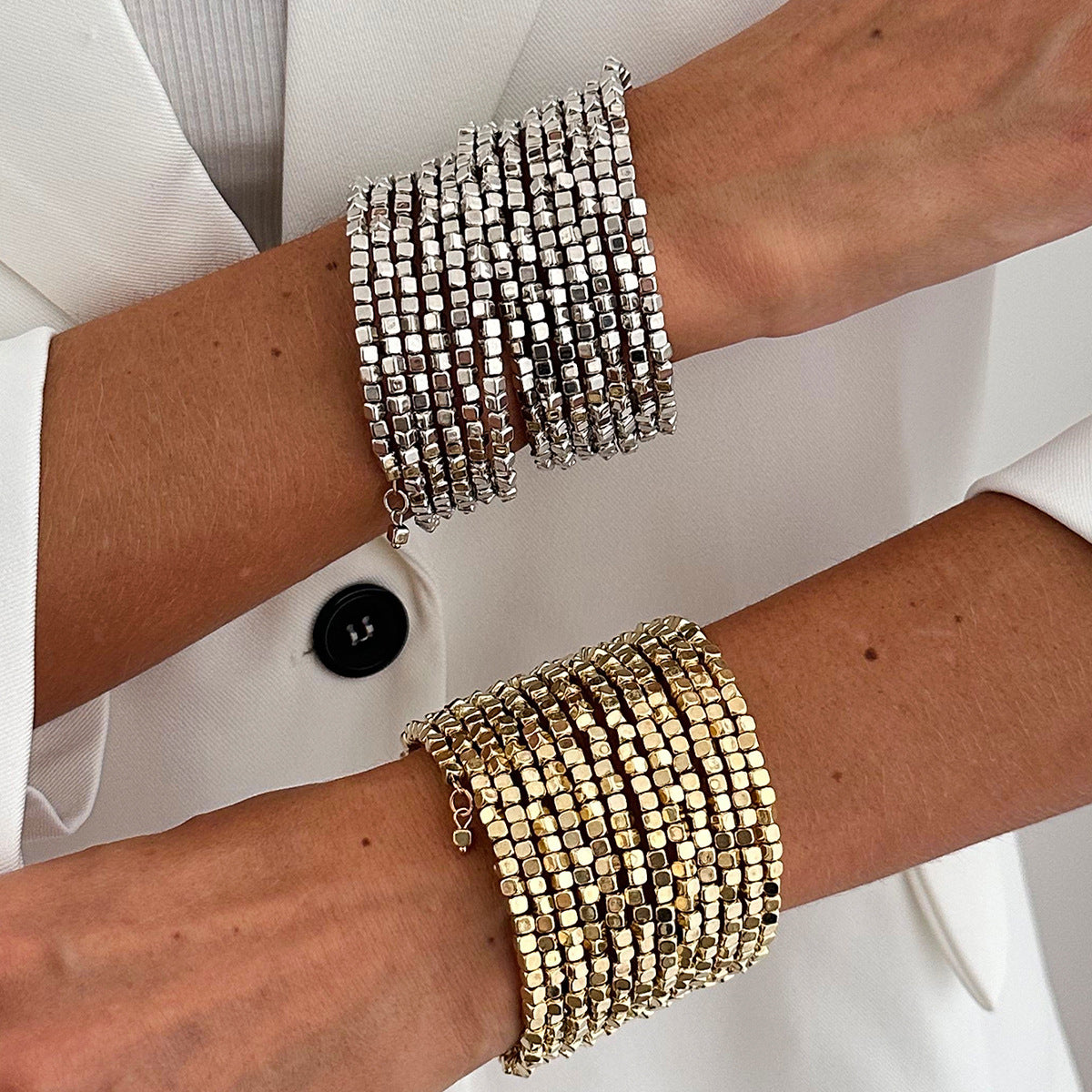 Wholesale Shiny Square Ccb Beaded Wrapped Wide Bracelet