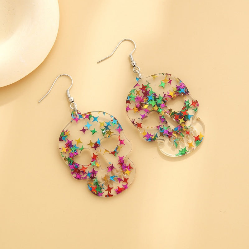 Wholesale star sequins acrylic earrings skull pendant plate earrings