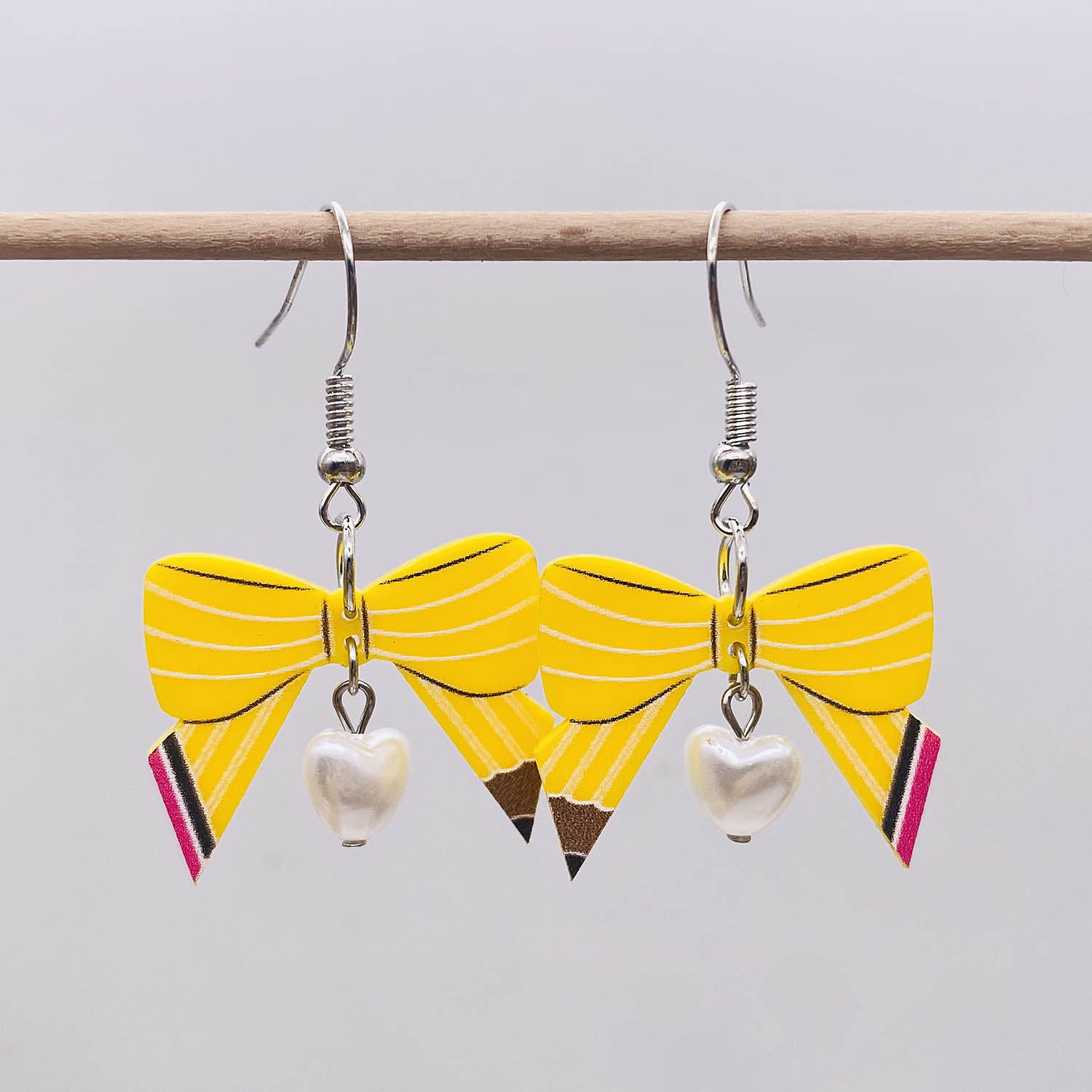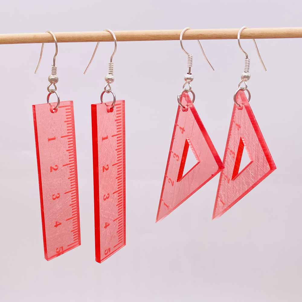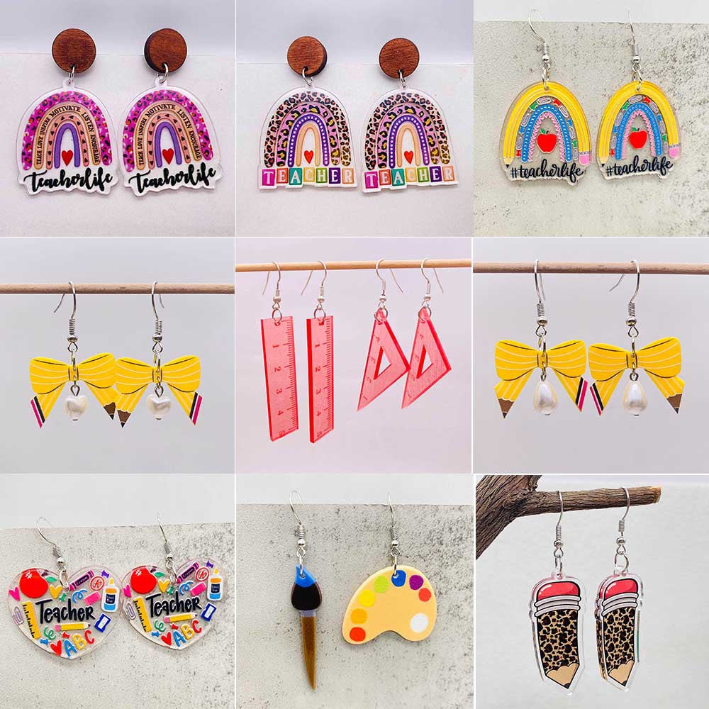 Wholesale Teacher' s Day Leopard Print Pencil Ruler Acrylic Earrings