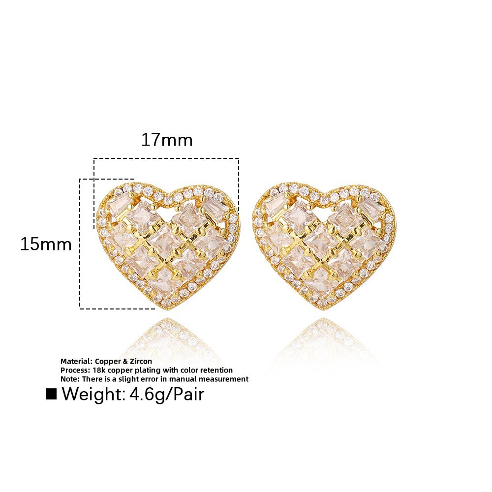 Wholesale Trapezoidal Zircon Heart Earrings