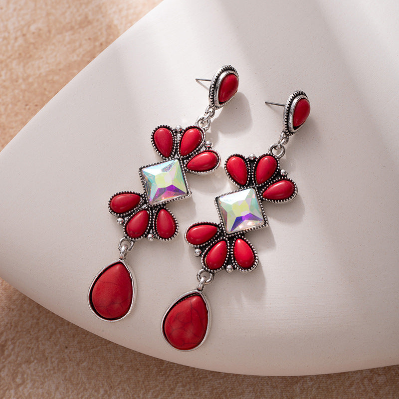 Wholesale Turquoise long earrings bohemian ethnic style earrings
