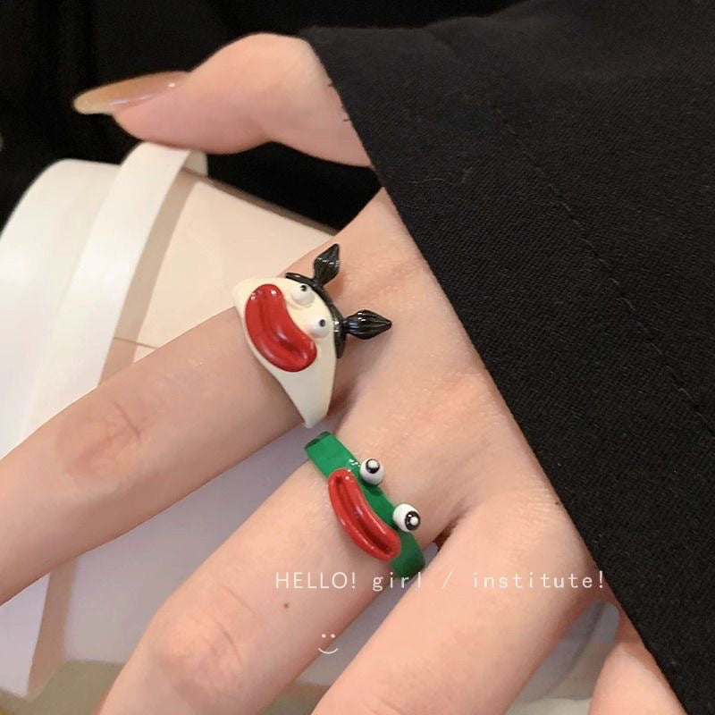 - 3018 White Ugly Cute Sausage Mouth Ring
