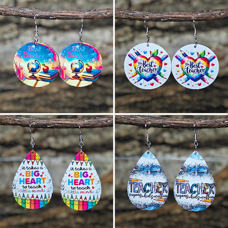 Wholesale College Style Earrings Globe Apple Pencil Drop Earrings