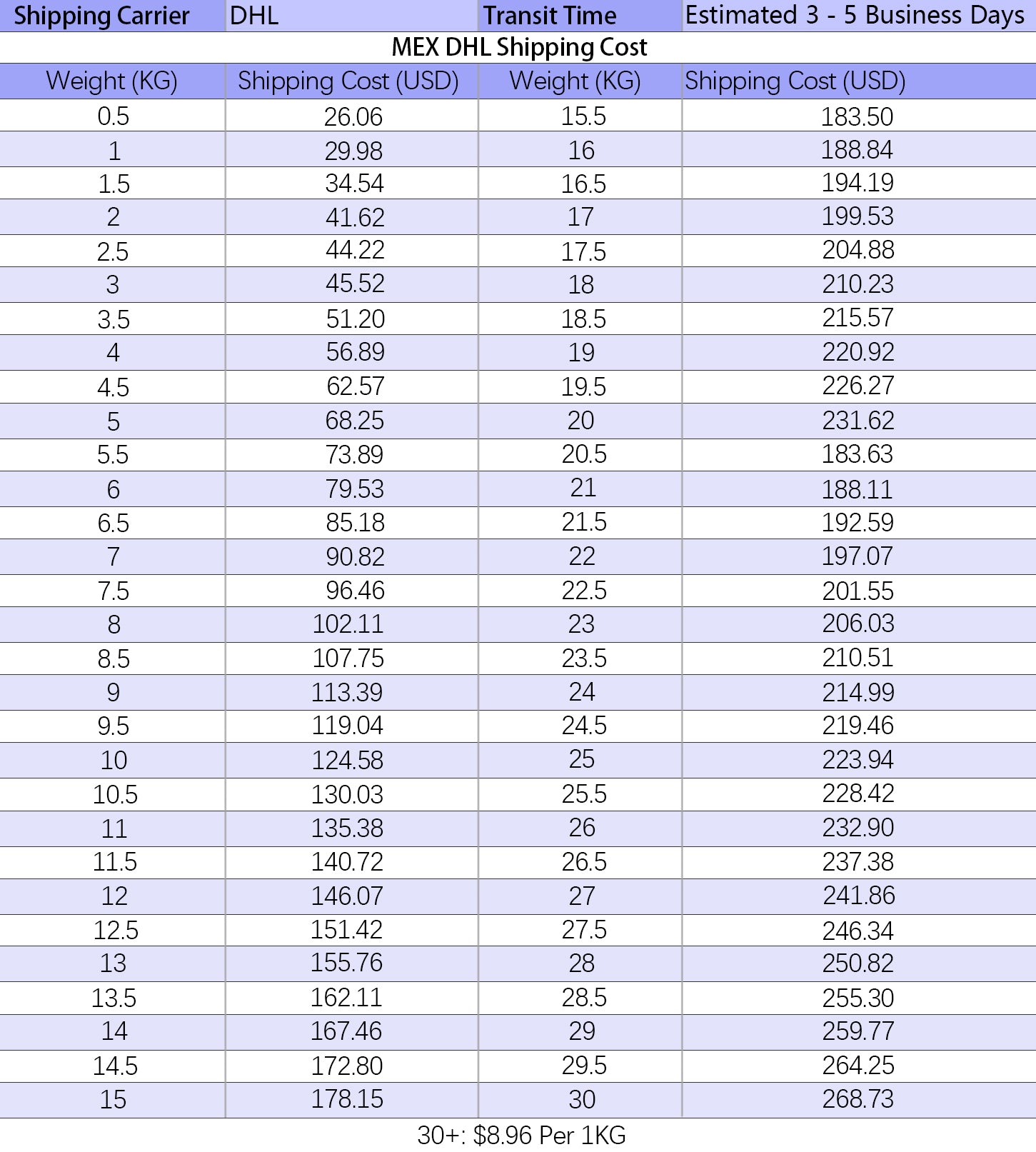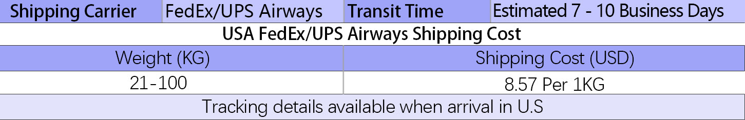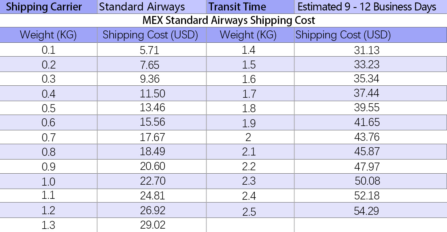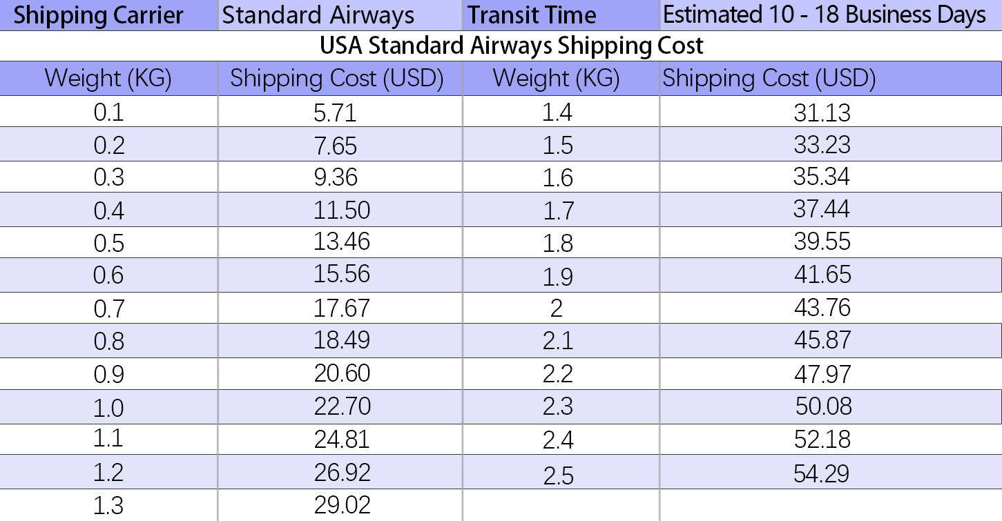 Shipping costs are calculated based on the weight of the products and the destination. The shipping cost for your order will be displayed at the checkout page before you complete your purchase. Please see estimated shipping times and shipping costs below: