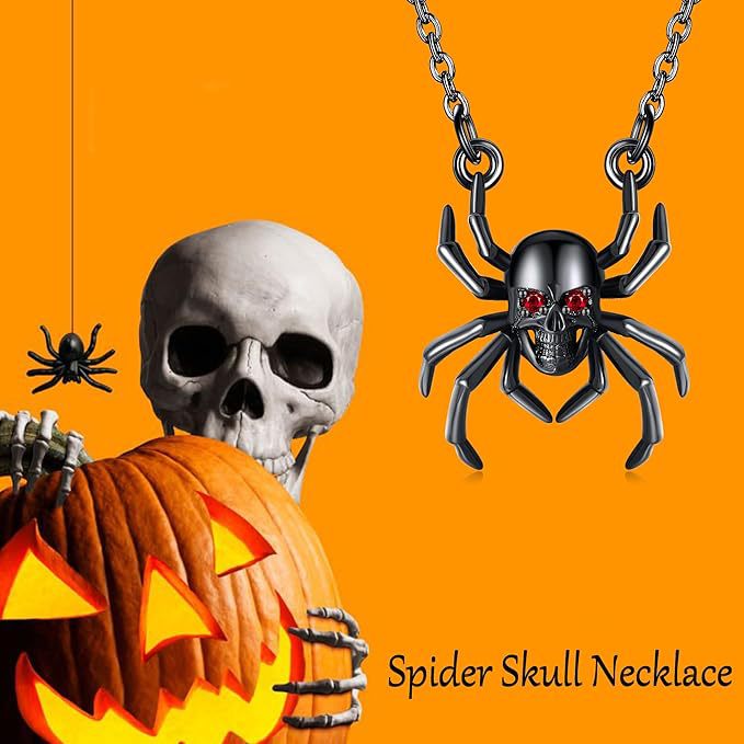 Wholesale Halloween Simple Spider Skull Pendant Punk Three-dimensional Necklace