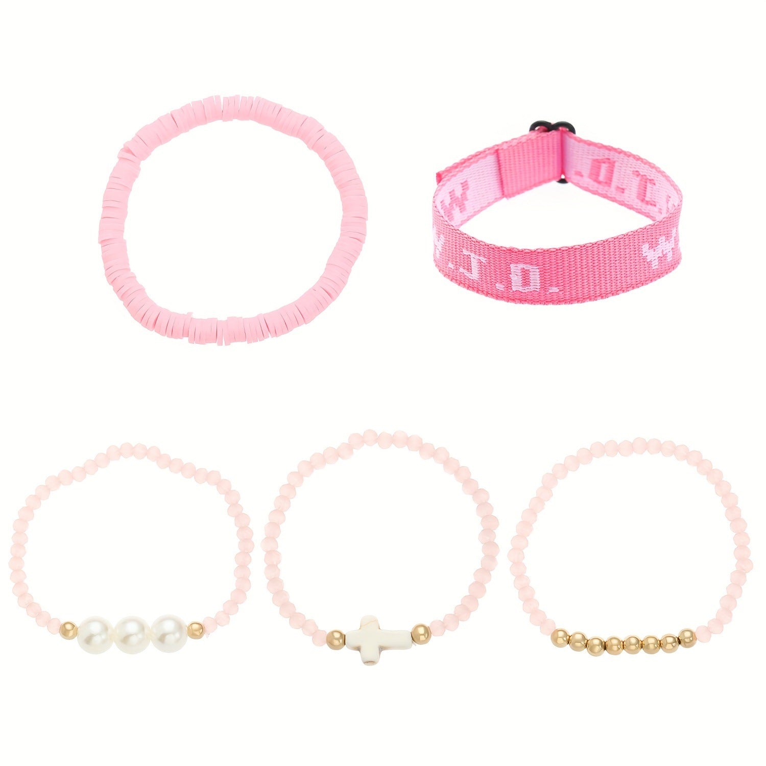Wholesale Pink 5-piece Cross Women' s Fashion Personality Elastic Bracelet Set