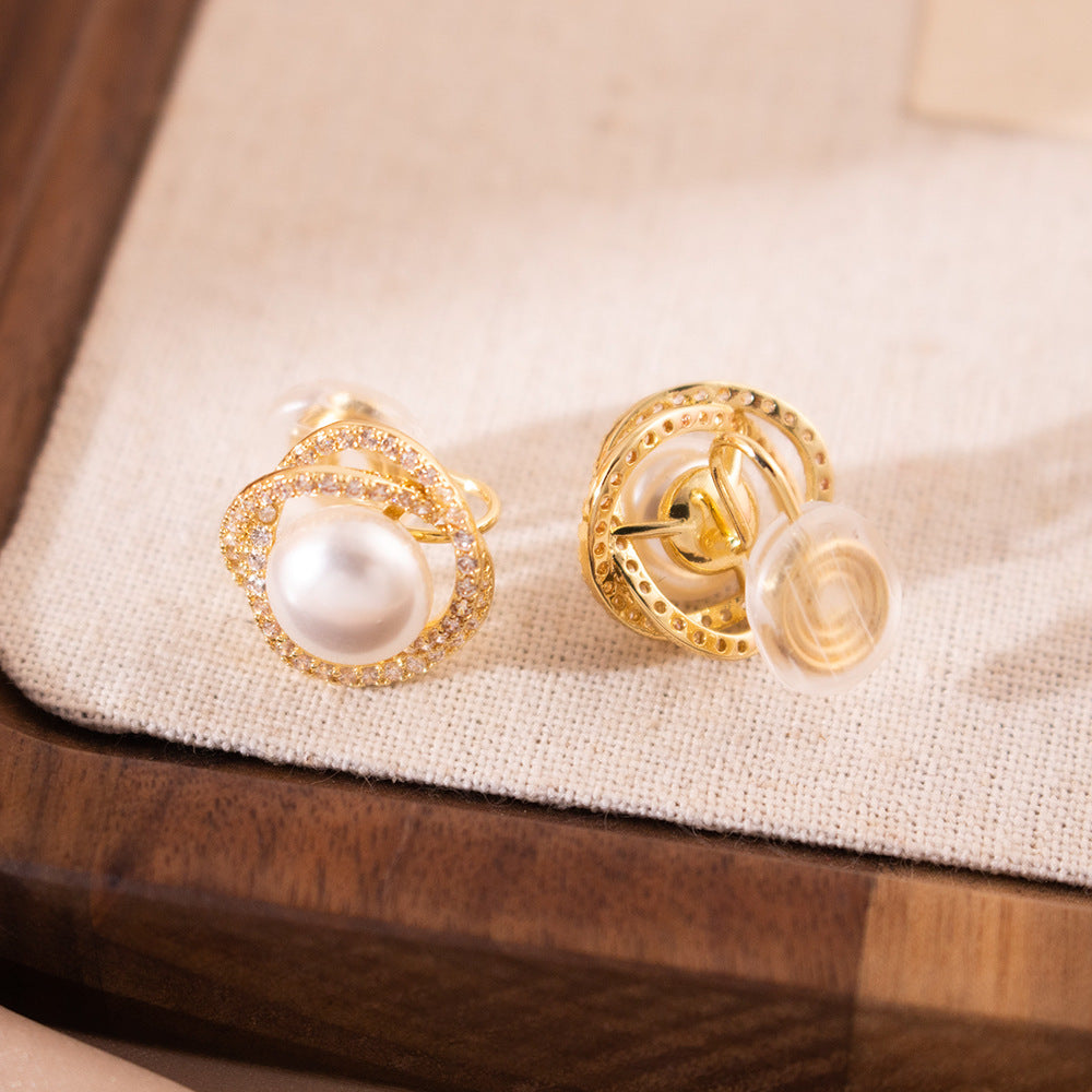 Wholesale Real Gold Electroplated Spiral Pearl Mosquito-repellent Incense Plate Retro Earrings